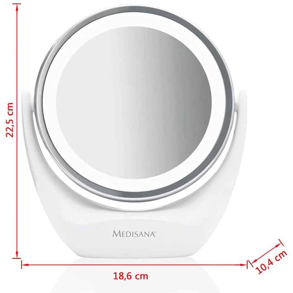 Gương trang điểm 2 mặt kèm đèn led Medisana là dụng cụ trang điểm hiện đại và tiện dụng dành cho các bạn gái năng động. Được trang bị 2 mặt gương trong đó có