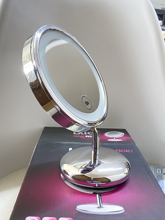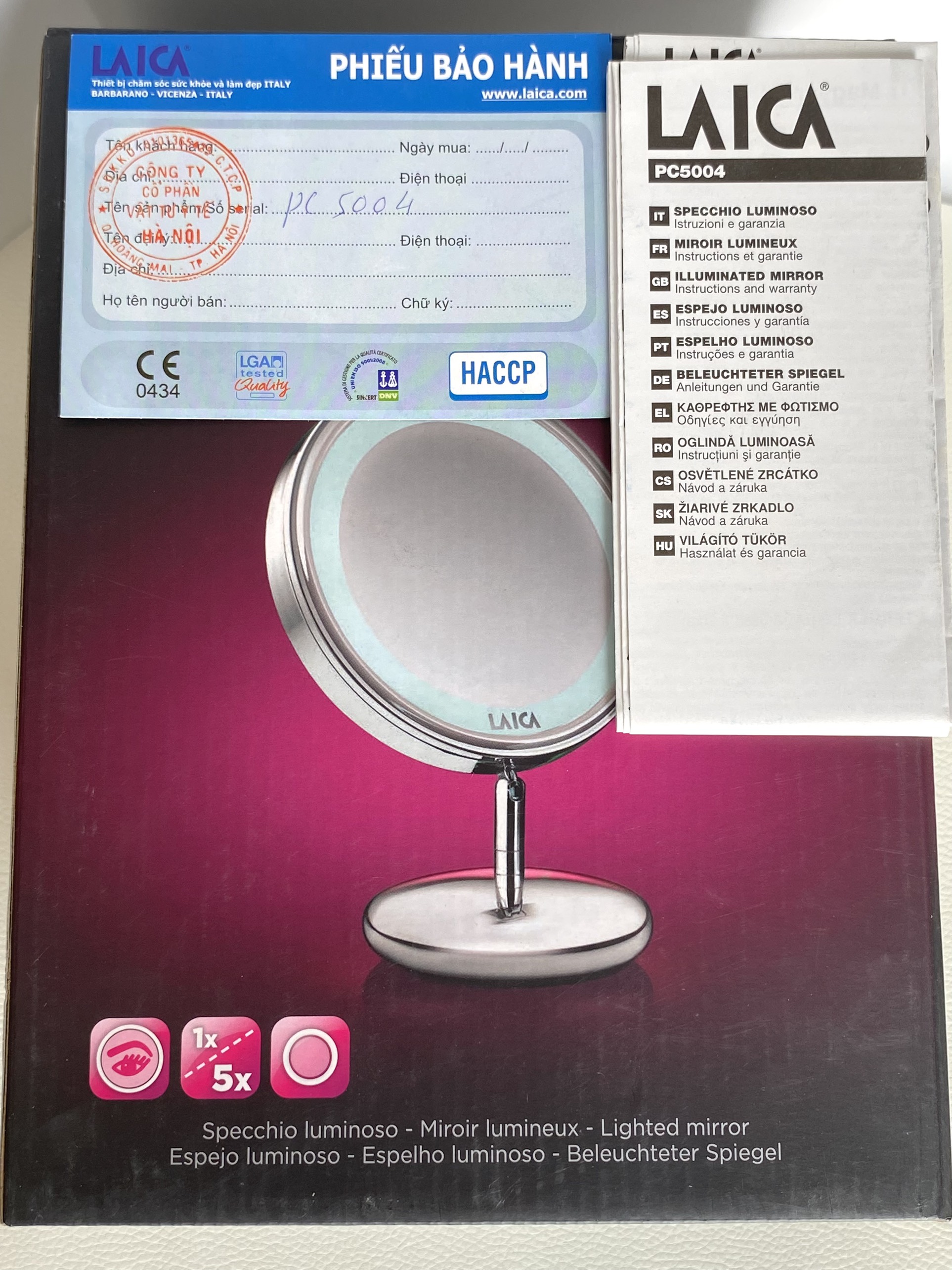 - Sản phẩm này còn được trang bị thêm đèn LED giúp bạn dễ dàng trang điểm mọi nơi khi thiếu ánh sáng mà không làm ảnh hưởng đến người khác, có hình dáng vô cùng nhỏ nhắn, thanh lịch, thiết kế thông minh có thể nghiêng nhiều góc giúp bạn dễ dàng nhìn ngắm nhiều phía của khuôn mặt hơn. Gương trang điểm Laica PC5004 chính hãng ITALY Thông Tin Sản Phẩm Gương Trang Điểm Laica PC5004