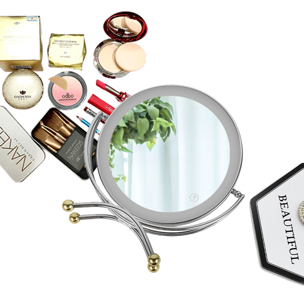 Gương Trang Điểm Để Bàn Có Đèn LED Cảm ứng Xoay 360 Độ Dùng Pin Sạc - 9154