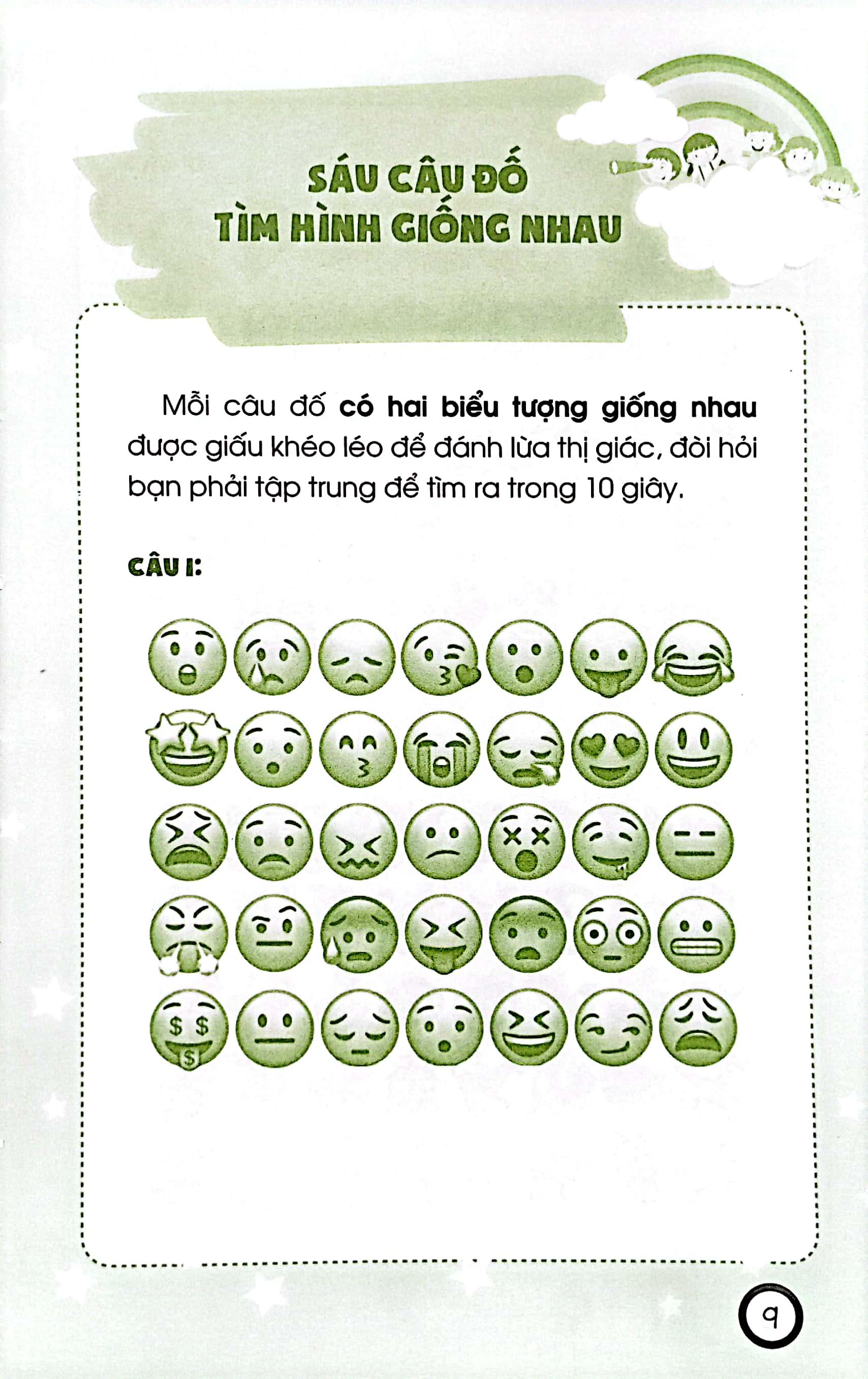 - Ban cần quan sát, suy luận logic để tìm quy luật của dãy hình, dãy số đã cho để đưa ra đáp án đúng. Tập trung hoàn toàn tâm trí cho việc giải đố - quan sát tỉ mỉ hết sức có thể, đọc từng câu chữ cẩn thận. Phải chắc chắn bạn hiểu những gì m.ình được yêu cầu thực hiện. Nếu vẫn không làm được thì hãy xem phần giải đố ở cuối sách. Hy vọng bạn sẽ có những trải nghiệm thật bổ ích.