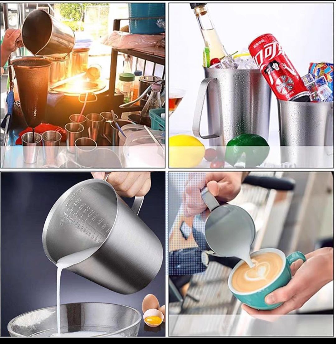 Mua tại Tiktok( hanhg cao cấp ) ca đánh sữa inox 304 có vạch đong 500ml, 700ml, 1000ml thiết kế tinh tế trọng lượng và kích thước tiêu chuẩn, công nghệ CNC chính sác vệ sinh dễ dàng, sản phẩm là một phần không thể thiếu của nghệ thuật Latte. Được làm bằng inox sus 304 dùng trong y tế, vệ sinh dễ dàng, có vạch chia thể tích dễ dàng để đong và pha đúng công thức chế biến thức uống khác sản phẩm có nhiều size đặc biệt size to có thể dùng làm xô đá ngâm ướp lạnh làm mát đồ uống rất tốt