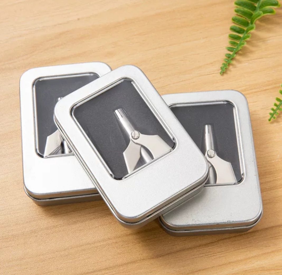 Dụng cụ cắt tỉa lông mũi bằng thép không gỉ lưỡi sắc bén hộp cao cấp, máy cắt lông mũi an toàn