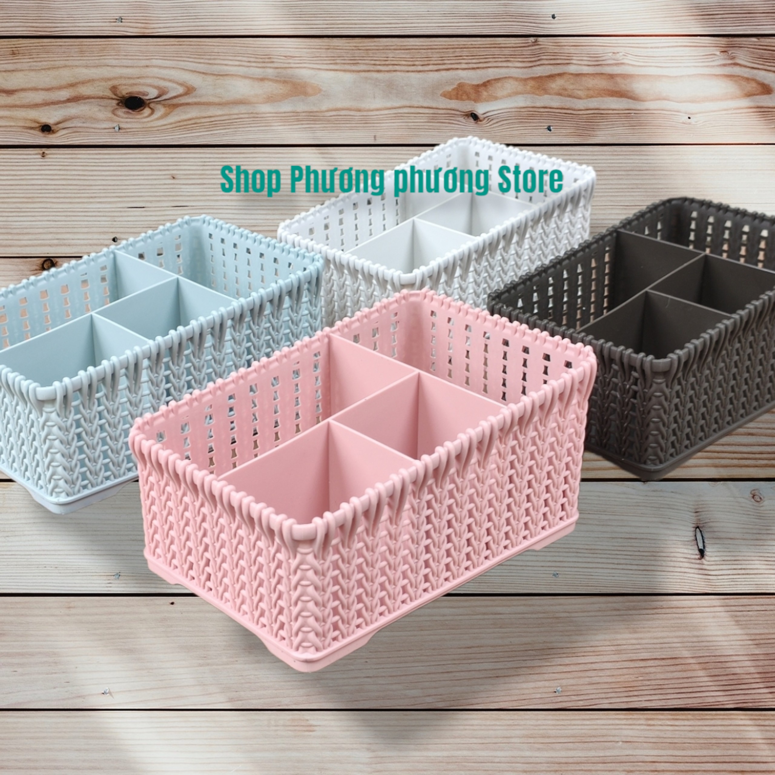 ✨( HÀNG CAO CẤP ) Khay đựng mỹ phẩm nhiều ngăn kiểu dáng mây đan HÀN QUỐC ( Tặng vỉ dán tường )