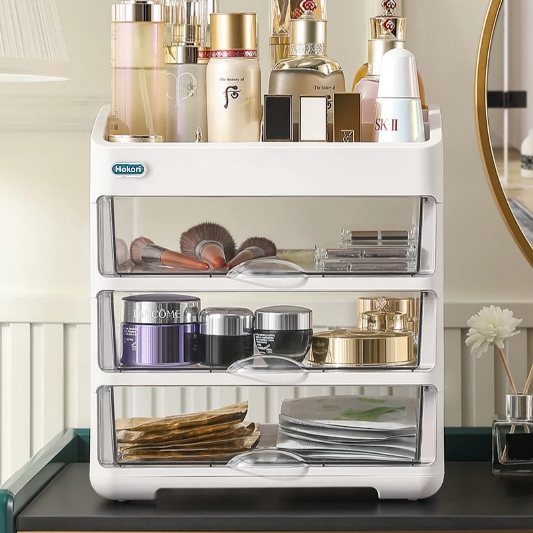 - Kệ mỹ phẩm trang sức 2/3/4 tầng trong suốt là sản phẩm tiện dụng, đẹp mắt giúp chị em xếp gọn mỹ phẩm, nước hoa, trang sức một cách đẹp mắt và sang trọng. - Kệ đựng mỹ phẩm được thiết kế với nhiều ngăn thông minh giúp bạn chứa được các vật dụng trang điểm, son, nước hoa, ngăn kéo giúp chứa đồ trang sức sáng bóng, tránh bụi bẩn.