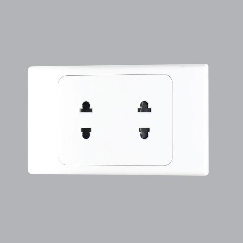 Thiết kế đẹp, kiểu dáng sang trọng Nhựa PC chống cháy, không bị phai màu Sử dụng chất liệu đồng, cấu tạo chắc chắn, phù hợp với các loại phích cắm 2 chấu Màn che