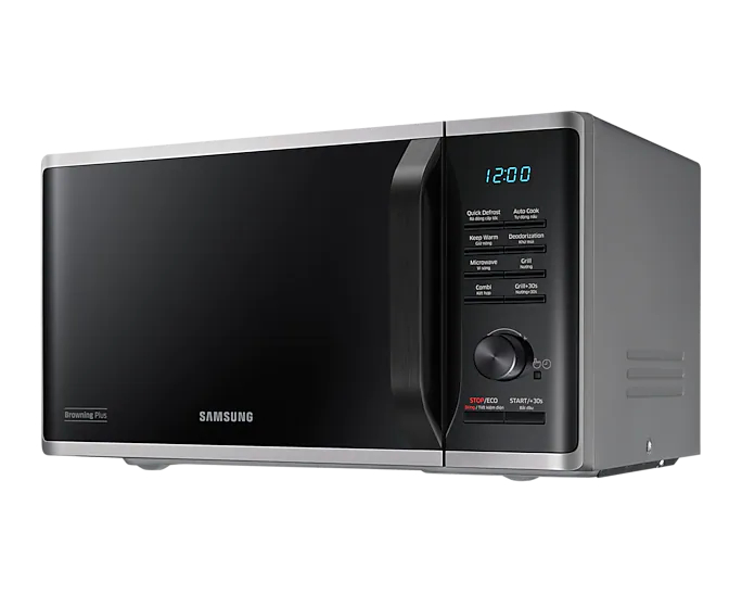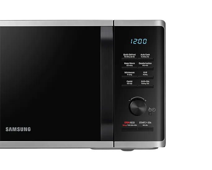 Món Ăn Đậm Màu Hấp Dẫn Lò vi sóng có nướng Samsung MG23K3515AS/SV có Chức năng Làm Đậm Màu mang đến màu sắc hấp dẫn cho món ăn, kích thích thị giác lẫn vị giác của bạn. Tăng thời gian nấu trong 30 giây để món ăn thêm giòn tan và đậm màu bắt mắt. Giữ Ấm Tối Ưu Nếu bạn phải chuẩn bị nhiều món ăn cùng lúc, hãy sử dụng chức năng Giữ Ấm của Lò vi sóng Samsung để giữ nhiệt độ cho thức ăn mà không lo bị nấu quá lửa. Nhờ đó, món ăn của bạn sẽ luôn nóng hổi, tươi ngon và sẵn sàng cho bạn thưởng thức bất cứ lúc nào. Rã Đông Nhanh Chức năng Rã Đông Nhanh của Lò vi sóng giúp rã đông tức thì và đồng đều cho thực phẩm. Bên cạnh đó, chức năng tự động tính toán thời gian rã đông chuẩn xác cho 5 loại thức ăn thông thường sẽ giúp bạn không mất nhiều thời gian để chuẩn bị nguyên liệu. Khoang Lò Tráng Men Gốm Ceramic Khoang lò tráng men gốm Ceramic giúp lau chùi dễ dàng, chống trầy hiệu quả và không ngả màu theo thời gian. Đi kèm là tính năng chống gỉ, chống xước cho độ bền cao. Thưởng Thức Hương Vị Truyền Thống Hãy thỏa mãn niềm đam mê thưởng thức những món ăn truyền thống bằng cách lựa chọn các công thức nấu món ăn truyền thống đa dạng đã được lập trình sẵn. Bạn có thể tạo ra nhiều món ăn hấp dẫn chỉ với một nút bấm đơn giản, tiết kiệm thời gian nấu nướng. Chế Độ Tiết Kiện Điện Chế độ Tiết Kiệm Điện giảm lượng điện tiêu thụ đáng kể với lượng điện ở chế độ nghỉ thấp nhất hiện nay. Khi không sử dụng lò, mức năng lượng được duy trì tối thiểu giúp bạn tiết kiệm tiền điện hiệu quả. Khử Mùi Hiệu Quả Thiết lập Khử mùi sẽ giúp đẩy không khí ra khỏi các khoảng trống bên trong lò vi sóng, nhờ đó mùi thức ăn sẽ tan biến nhanh chóng. Khi mùi thức ăn khó chịu bị loại trừ, món ăn của bạn sẽ luôn tươi ngon đúng chuẩn.