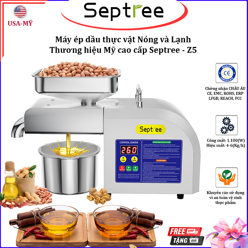 Máy Ép Dầu Thực Vật Nóng Lạnh Septree Z5 – Thương Hiệu Mỹ Cao Cấp Dùng Cho Gia Đình Septree là thương hiệu nổi tiếng đến từ Mỹ, Septree là hãng chuyên sản xuất các