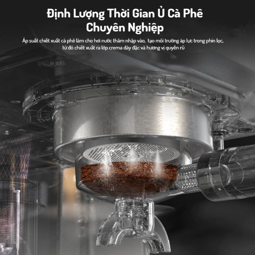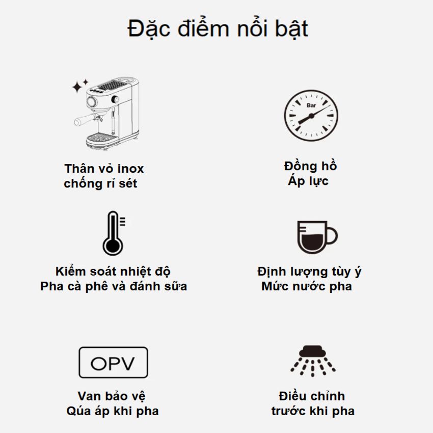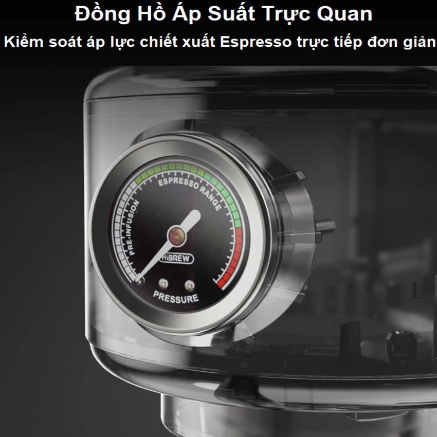 - Tích hợp đồng hồ áp suất kiểm soát shot cafe espresso