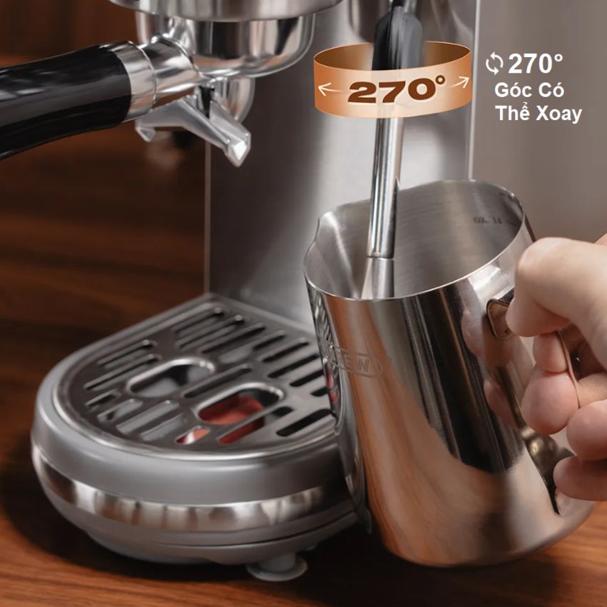 Bơm Italy áp suất 20 bar tạo ra tách cà phê đậm đà Công suất 1400W, điện áp 220-240V/50Hz-60Hz Gia nhiệt nhanh chóng, đảm bảo cà phê chiết xuất với nhiệt độ lý tưởng nhất