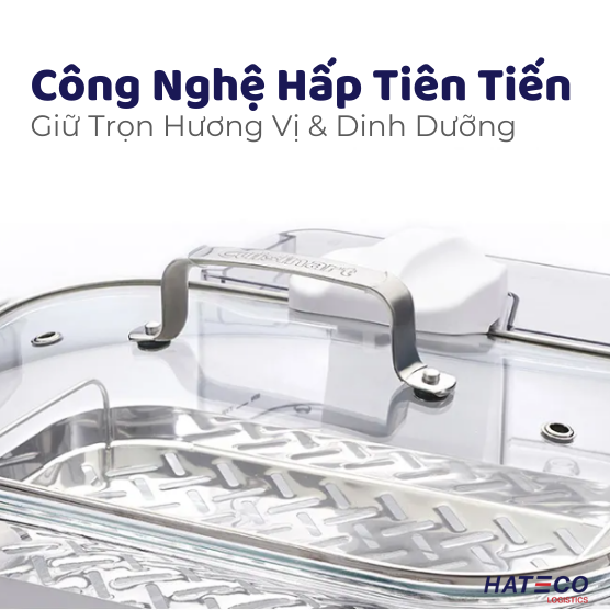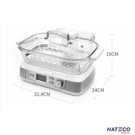 - Nồi và nắp thủy tinh, khay hấp bằng thép không gỉ (có thể đảo ngược) đều có thể rửa bằng máy rửa chén. Đặc điểm chính: Hệ thống hấp mạnh mẽ Nồi thủy tinh an toàn cho máy rửa chén, dung tích 5L 5 chế độ nấu cài đặt sẵn: hải sản, gia cầm, ngũ cốc, rau củ, và chế độ thủ công Hẹn giờ đếm ngược 60 phút Bảng điều khiển LCD Cảnh báo âm thanh Nút Start/Stop, Pause & Reheat Bình chứa nước tháo rời 1L Khay hấp bằng thép không gỉ có thể lật để chứa các loại thực phẩm khác nhau Nắp kính có viền thép không gỉ Không chứa BPA Thông số kĩ thuật: Công suất: 1650W Kích thước bao bì: 445mm × 390mm × 285mm - Rộng x Sâu x Cao Kích thước sản phẩm: 410mm × 335mm × 288mm - Rộng x Sâu x Cao Trọng lượng tổng (cả bao bì): 7,8kg Trọng lượng sản phẩm: 5,8kg