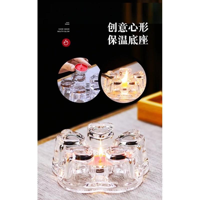 BỘ ẤM TRÀ THUỶ TINH CHỊU NHIỆT CÓ ĐẾ NẾN, BỘ ẤM CHÉN UỐNG TRÀ CAO CẤP 600ML