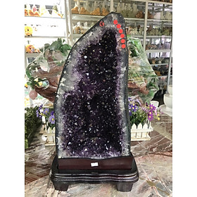 Mua tại TiktokHợp mệnh Hỏa - Thổ Chất liệu: Đá thạch anh tím Khối lương: 22,5 kg Kích thước: Dài 30 cm x Rộng 26,5 cm x Cao 52 cm Hốc thạch anh tím - động thạch anh tím là sự kết tinh của các tinh thể thạch anh tím nhỏ li ti sáng lấp lánh được bao bọc bởi lớp đá thô bên ngoài, tạo ra một trường khí năng lượng cả trong lẫn ngoài, cát khí tốt sẽ được tích tụ bên trong lòng của hốc thạch anh và giữ lại vượng khí, tài lộc cho gia chủ. Vị trí đặt: Để bàn làm việc, phòng khách, trưng bày, bàn học, bàn thờ thần tài, cửa hàng kinh doanh, két sắt, quà tặng ý nghĩa,
