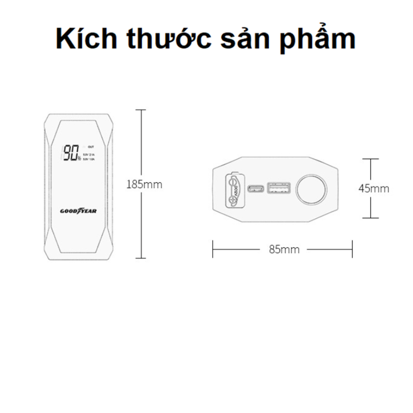 - Được sản xuất từ những linh kiện chất lượng cao với quy trình kiểm soát nghiêm ngặt bộ kík ắc quy ô tô Goodyear GY-5358 có khả năng cung cấp dòng lên đến 800A (peak current) cho phép khởi động gần như tất cả các dòng xe cá nhân và gia đình hiện nay. - -- Bên cạnh đó với dung lượng pin lưu trữ lên đến 10000mAh cho phép bạn có thể khởi động đến 35 lần cho một lần sạc đầy pin. Tính năng nổi bật