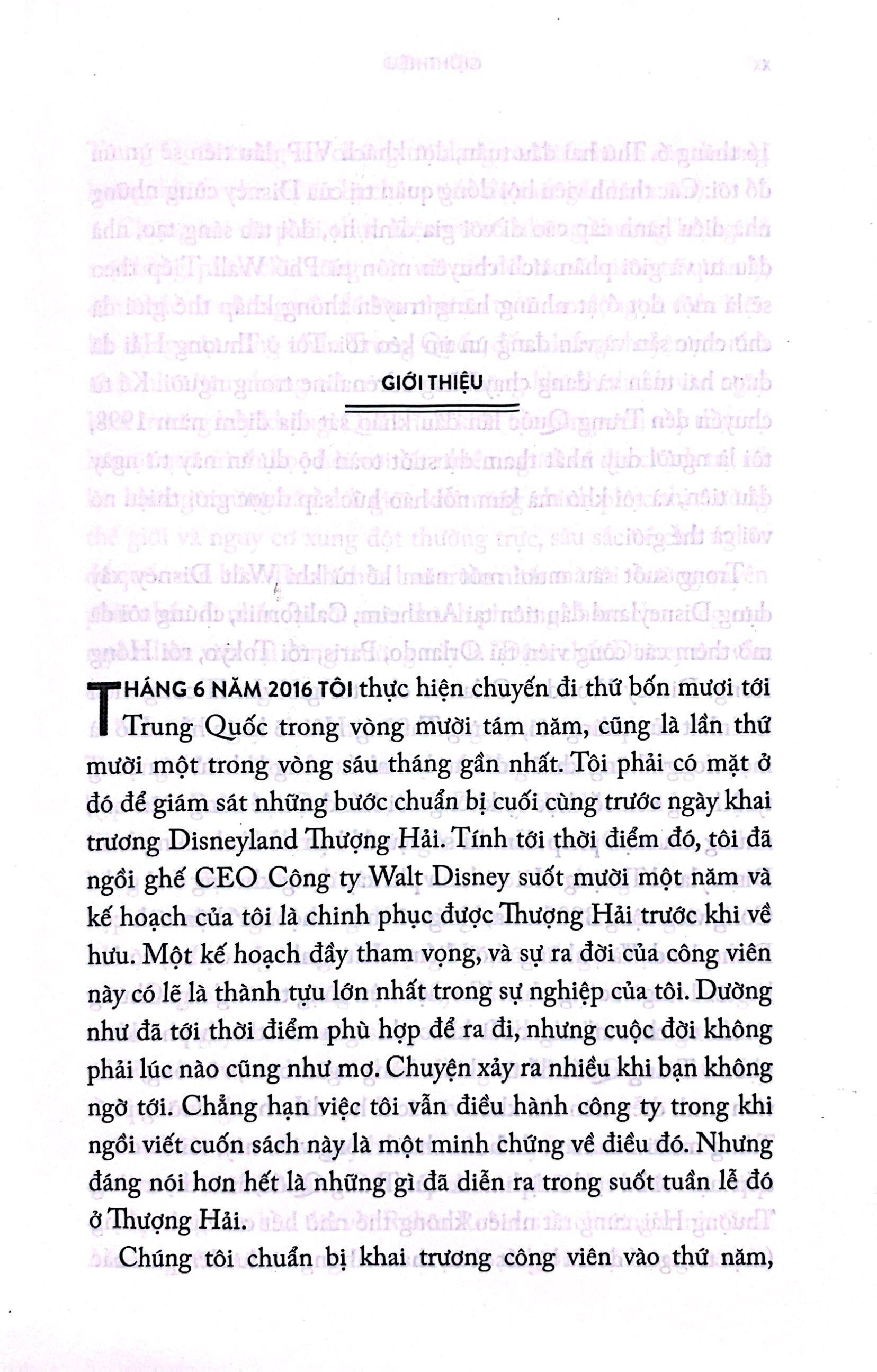 Cuốn sách này nói về sự tò mò không ngừng đã thúc đẩy Iger trong suốt 45 năm, kể từ ngày ông bắt đầu làm công việc thấp nhất ở ABC. Đó cũng là về sự thấu đáo và tôn trọng, cũng như cách tiếp cận ngay thẳng-thắng-tiền bạc đã trở thành nền tảng cho mọi dự án và quan hệ đối tác mà Iger theo đuổi, từ tình bạn sâu sắc với Steve Jobs trong những năm cuối đời cho đến tình yêu vĩnh cửu dành cho thần thoại Chiến tranh giữa các vì sao.