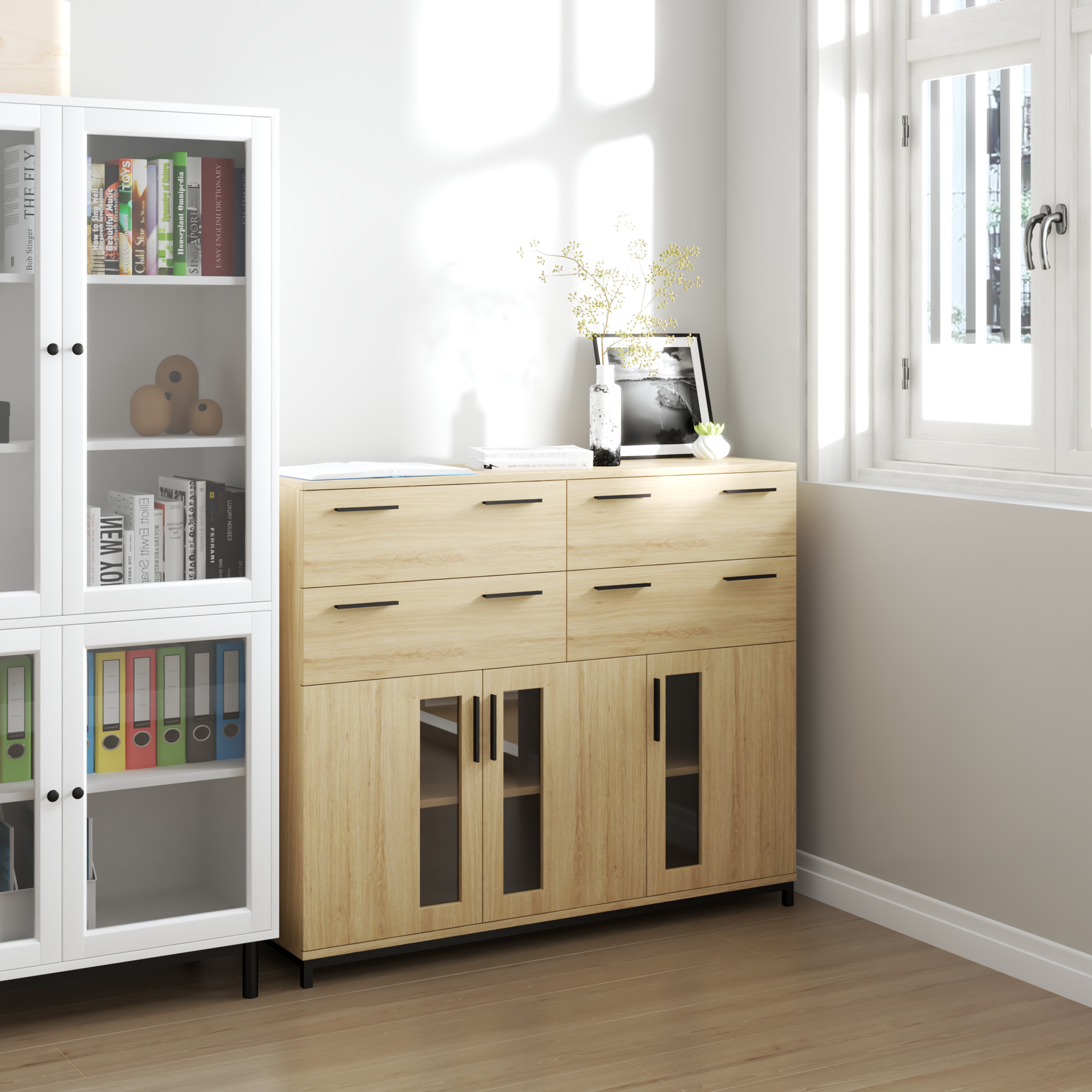 ✨[Happy Home Furniture] LOUIS , Tủ lưu trữ 4 ngăn kéo 3 cửa mở - chân sắt , 126cm x 36cm x 104cm ( DxRxC), THK_060