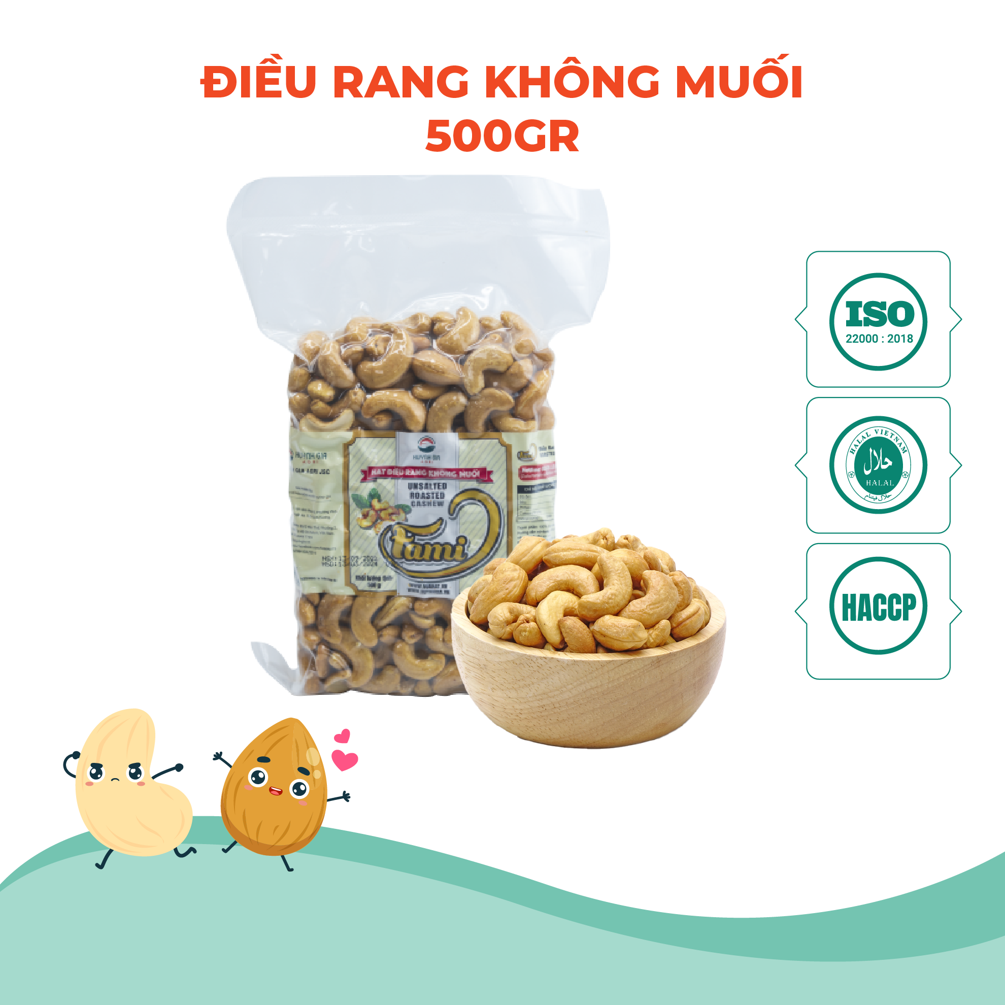 THÔNG TIN SẢN PHẨM HẠT ĐIỀU RANG MUỐI FAMINUTS Hạt điều rang muôi Bình Phước size A Cồ đạt chuẩn xuất khẩu Thành phần: Hạt điều rang muối size A Cồ Khối lượng: Hũ 250g, Hũ 500g, Túi 500g hút chân không Hương Vị: rang muối thơm và béo Đối tượng sử dụng: