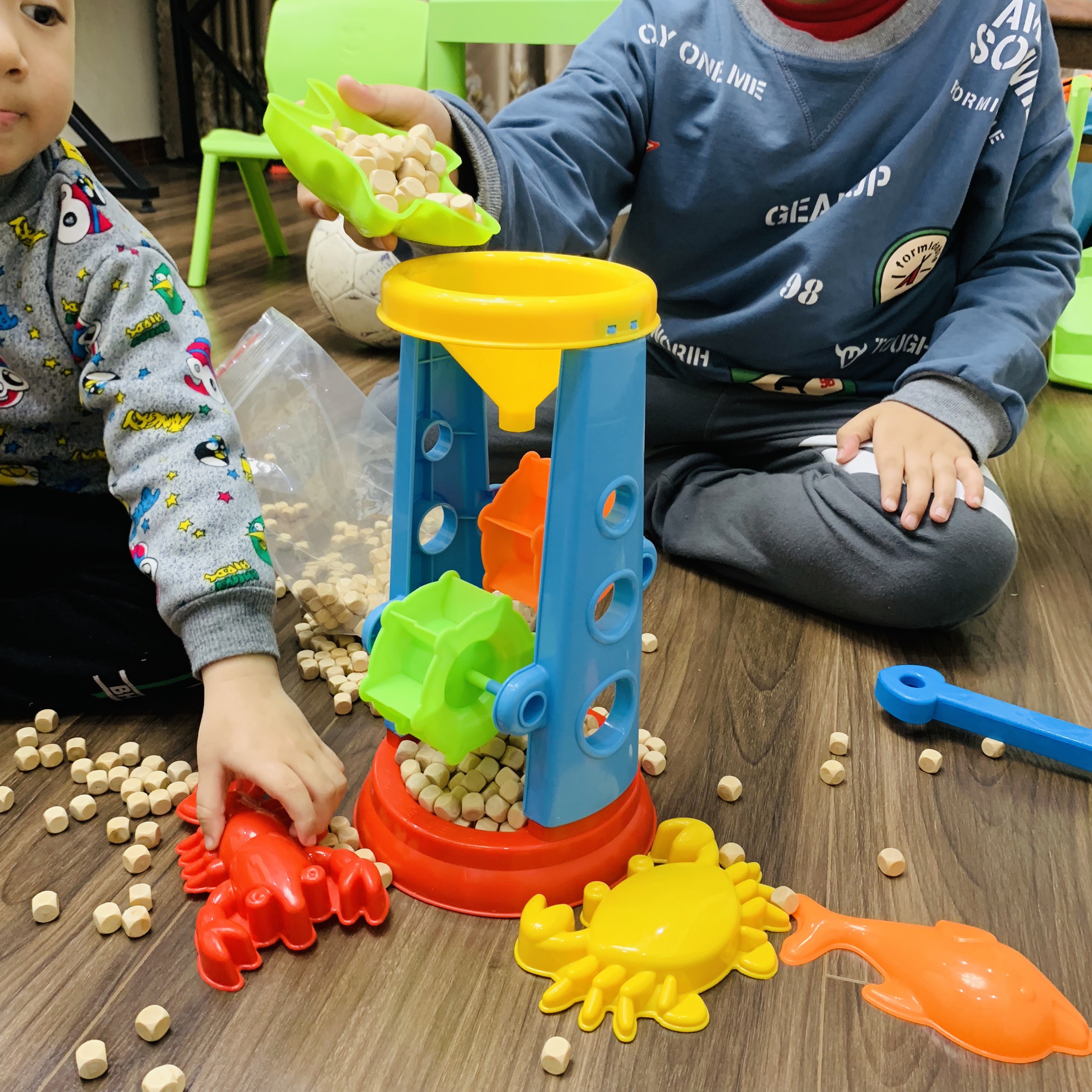 ✨Hạt Gỗ An Toàn Kèm Tháp Quay Cát Cho Bé Chơi Xúc Cát 500Gr Chắc Mịn Thuần Mộc Tự Nhiên Đồ Chơi Trong Nhà Ngoài Sân Cho Trẻ