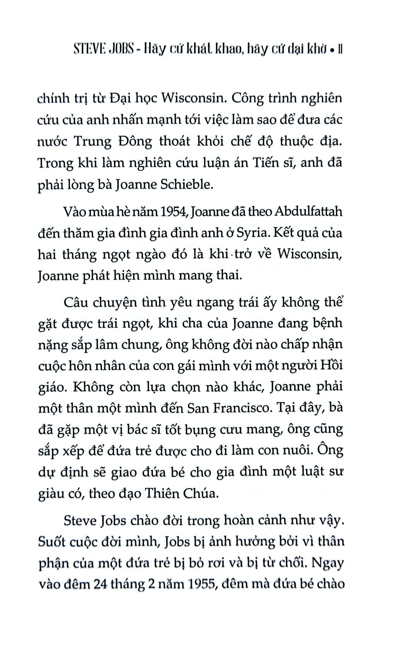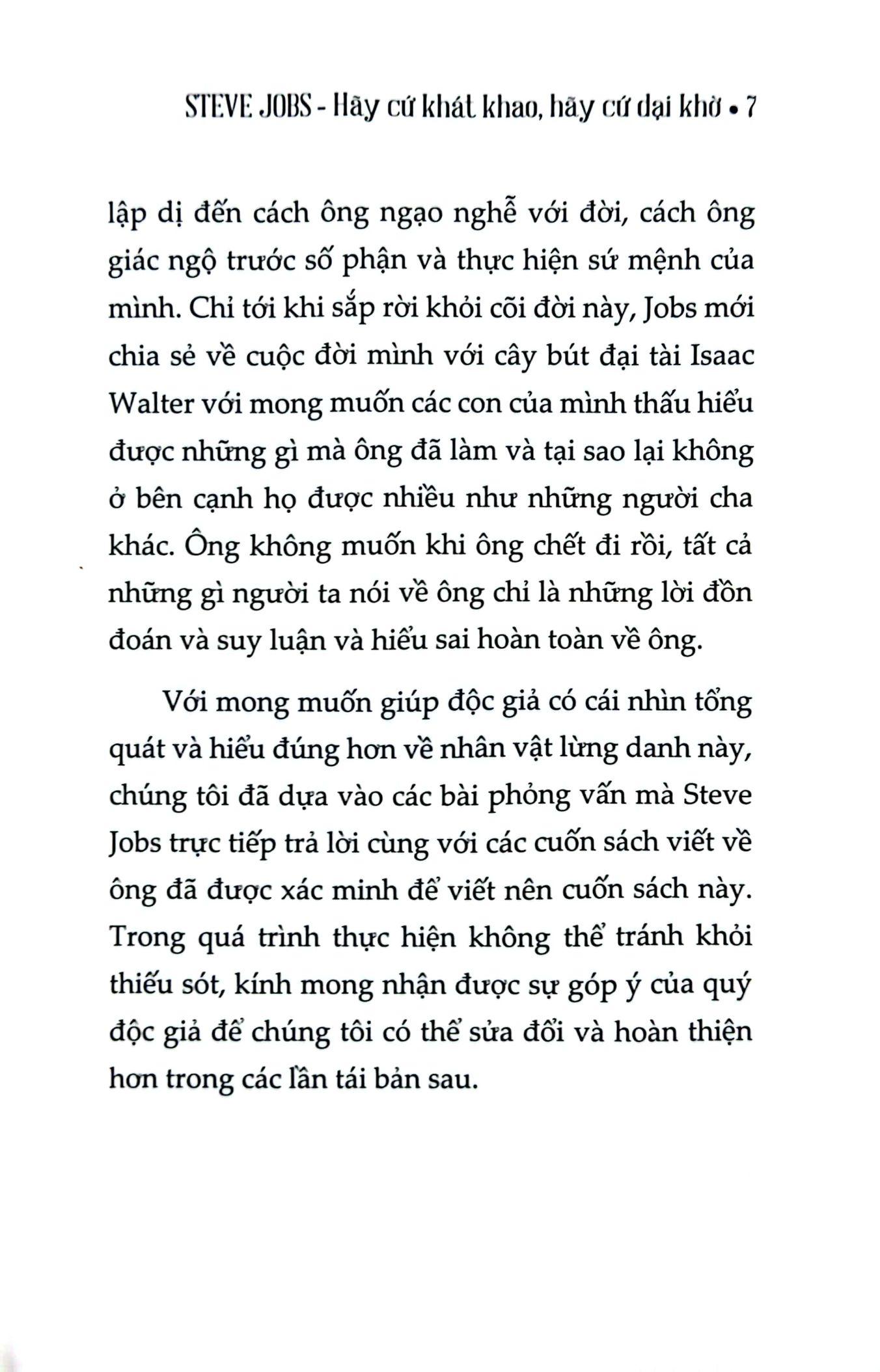 STAY HUNGRY, STAY FOOLISH - THẾ GIỚI NÀY KHÔNG VÌ BẠN LÙI BƯỚC MÀ SẼ TRỞ NÊN DỊU DÀNG VỚI BẠN HƠN, HAY CUỘC ĐỜI BẠN SẼ TRỞ NÊN TỐT ĐẸP HƠN. THẾ NÊN, HÃY CỨ KHÁT KHAO ĐI, KHÁT KHAO BẰNG TẤT CẢ NHỮNG GÌ BẠN CÓ. HÃY CỨ DẠI KHỜ ĐI, HÃY DẠI KHỜ TIN RẰNG KHÁT KHAO CỦA MÌNH NHẤT ĐỊNH SẼ TRỞ THÀNH HIỆN THỰC.