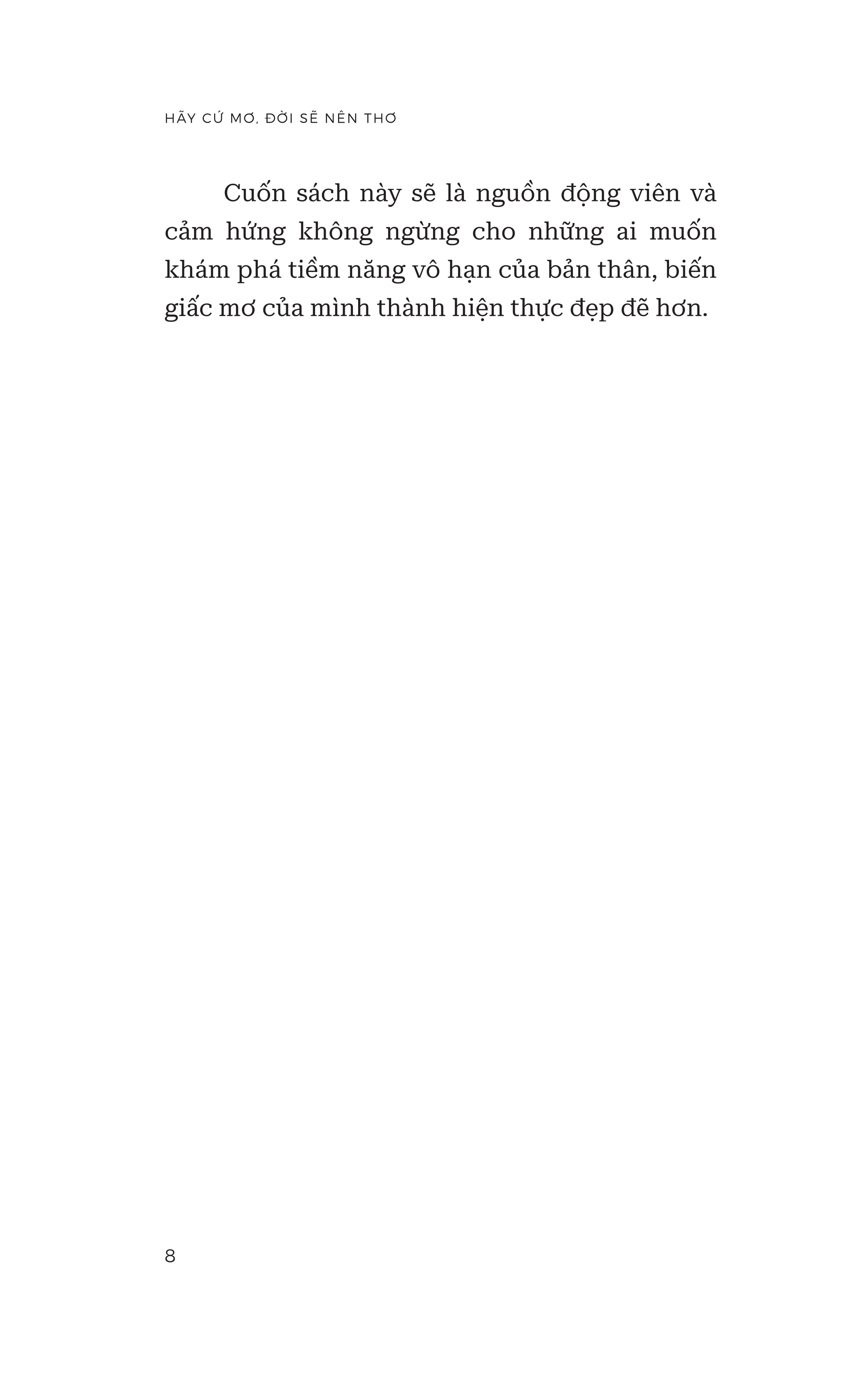 “Hãy cứ mơ, đời sẽ nên thơ” không chỉ là một cuốn sách mà còn là một hành trình để khám phá vẻ đẹp của sự tưởng tượng và lòng tin vào khả năng của bản thân. Trên trang sách này, chúng tôi không chỉ chia sẻ câu chuyện, trải nghiệm và bài học từ những người đã dũng cảm bước ra khỏi ranh giới của thực tế, mà còn cung cấp cho bạn những công cụ và kỹ thuật để thúc đẩy sự sáng tạo, đổi mới trong cuộc sống hàng ngày của bạn.