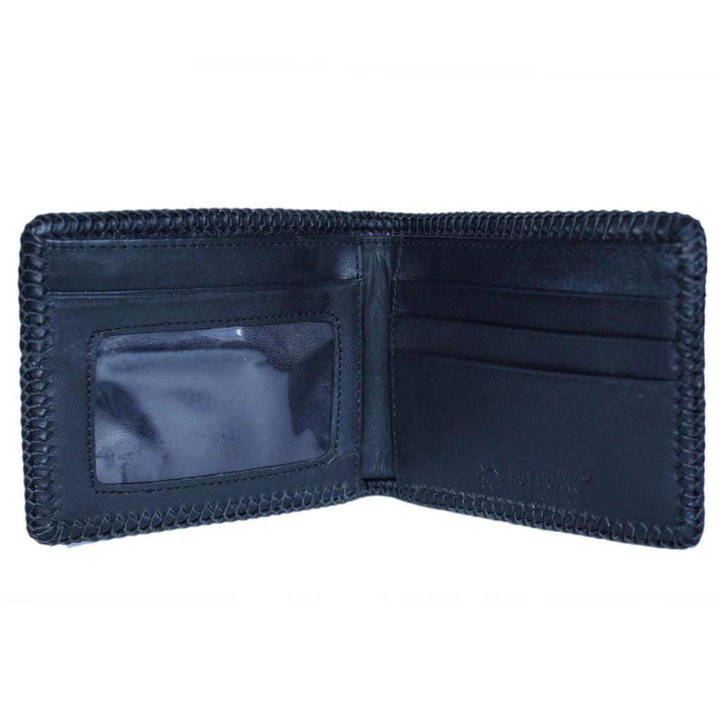- Tên sản phẩm: Bóp nam da đà điểu Huy Hoàng da bụng đan viên màu đen - HP2439
