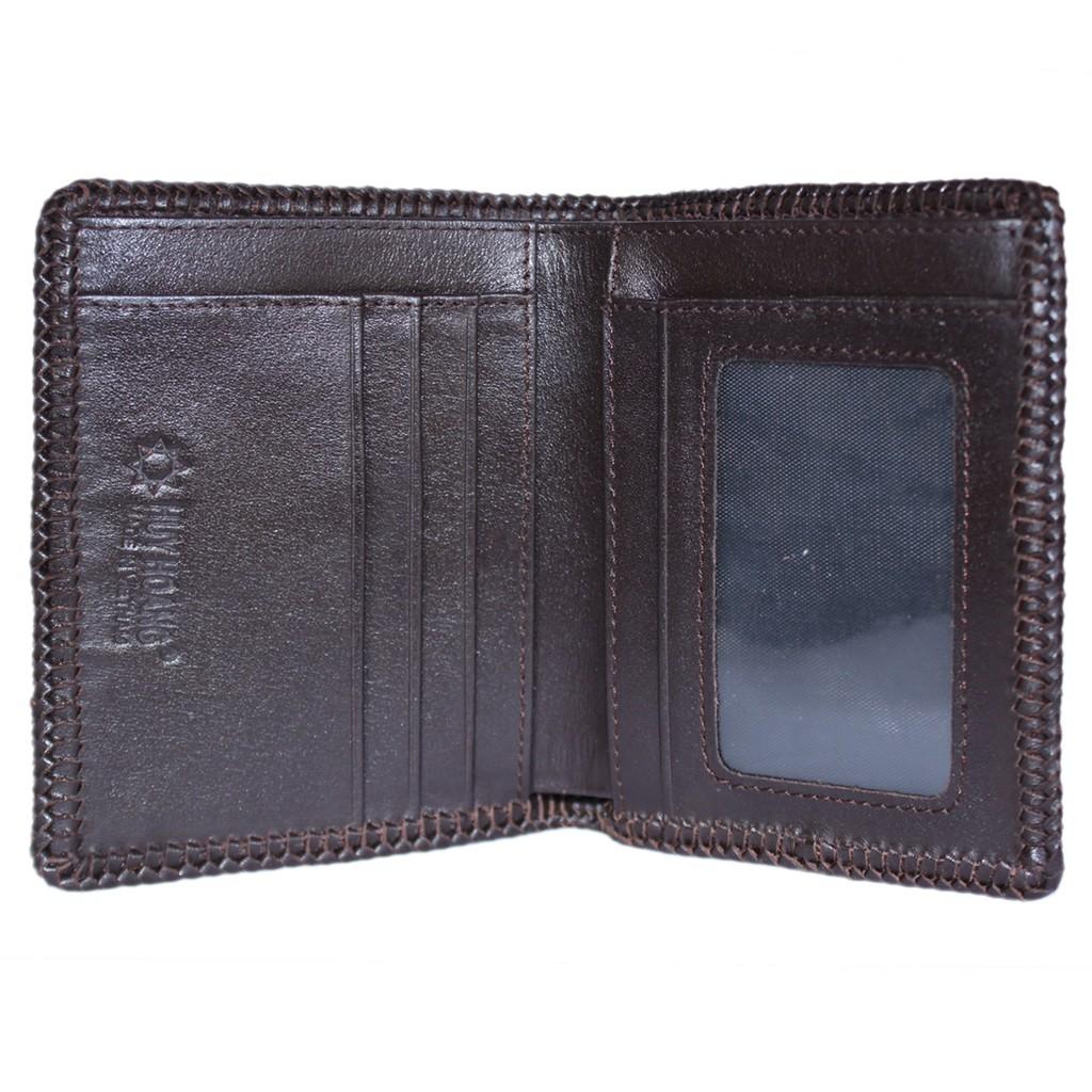 - Tên sản phẩm: Bóp nam da đà điểu Huy Hoàng da trơn đan viền kiểu đứng màu nâu đất - HP2448