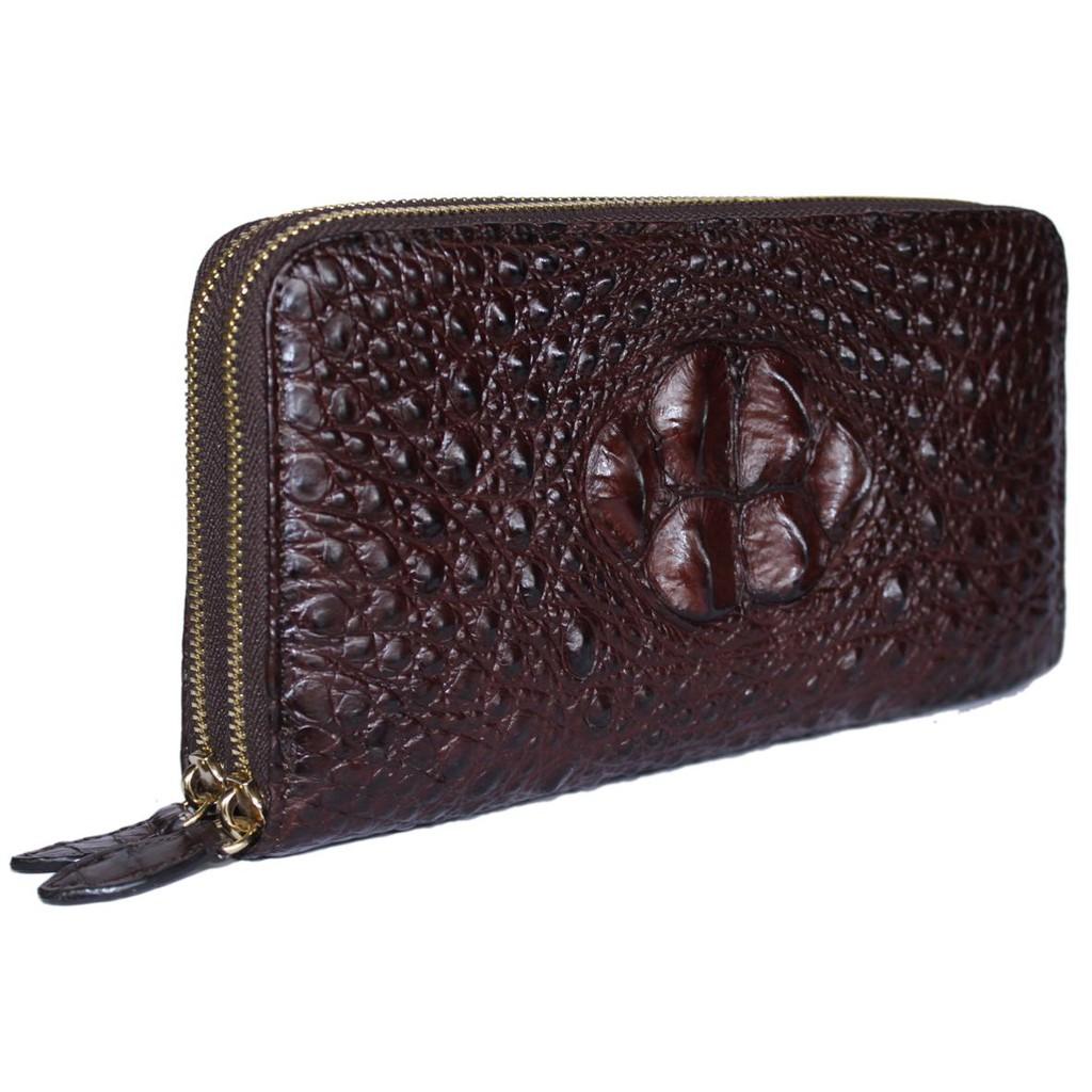 Ví/Bóp nữ da bò Huy Hoàng vân cá sấu nhiều ngăn màu nâu 3134