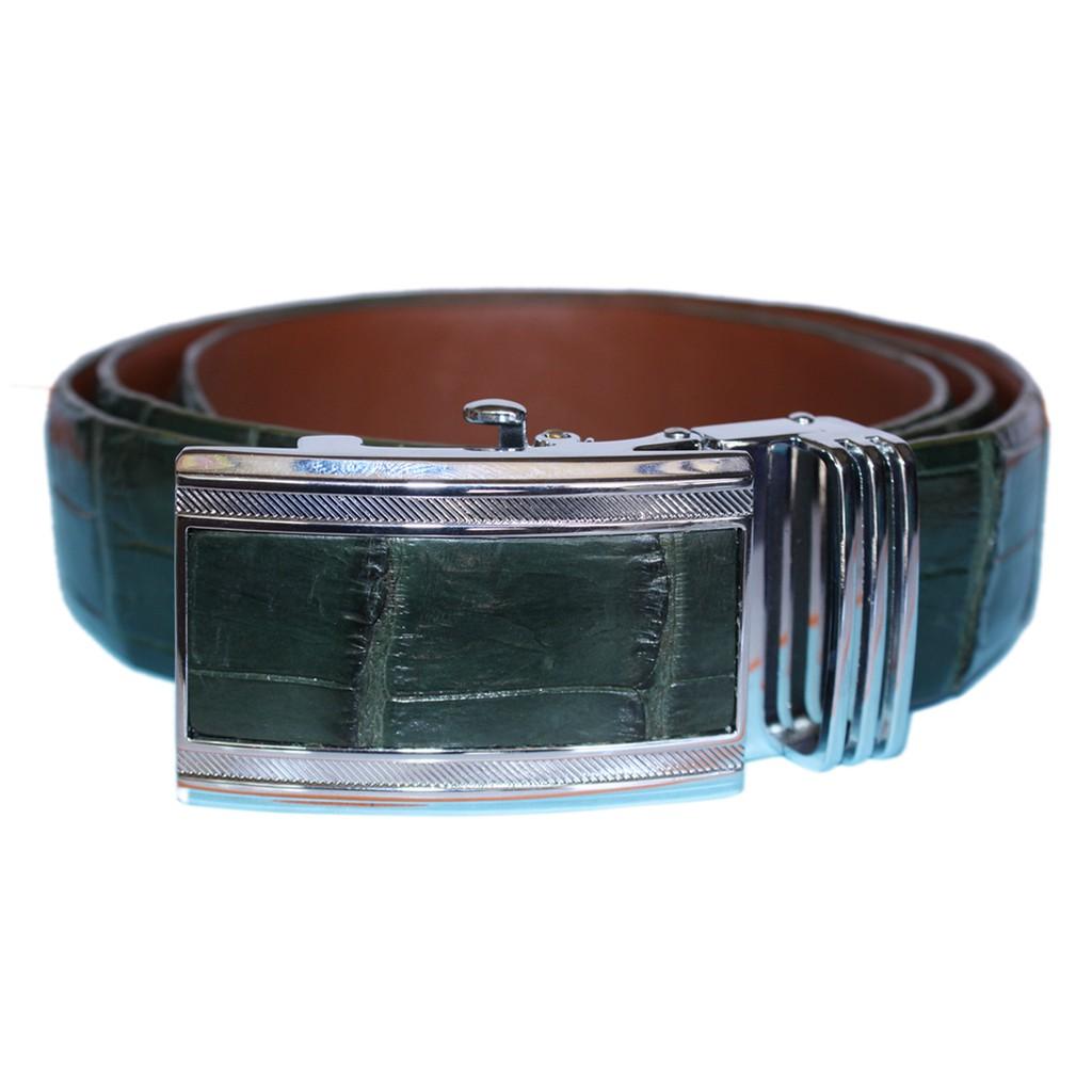 ✨HC4827 - Dây nịt nam da cá sấu Huy Hoàng nguyên con bụng 4P màu xanh rêu