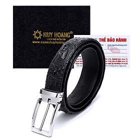 Dây nịt/Thắt lưng nam da bò Huy Hoàng vân cá sấu 1 lớp 3,5P màu đen 4150