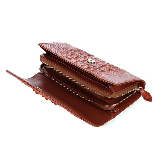 Ví/Bóp nữ da bò Huy Hoàng vân cá sấu lớn 3 gấp màu nâu đỏ 3154