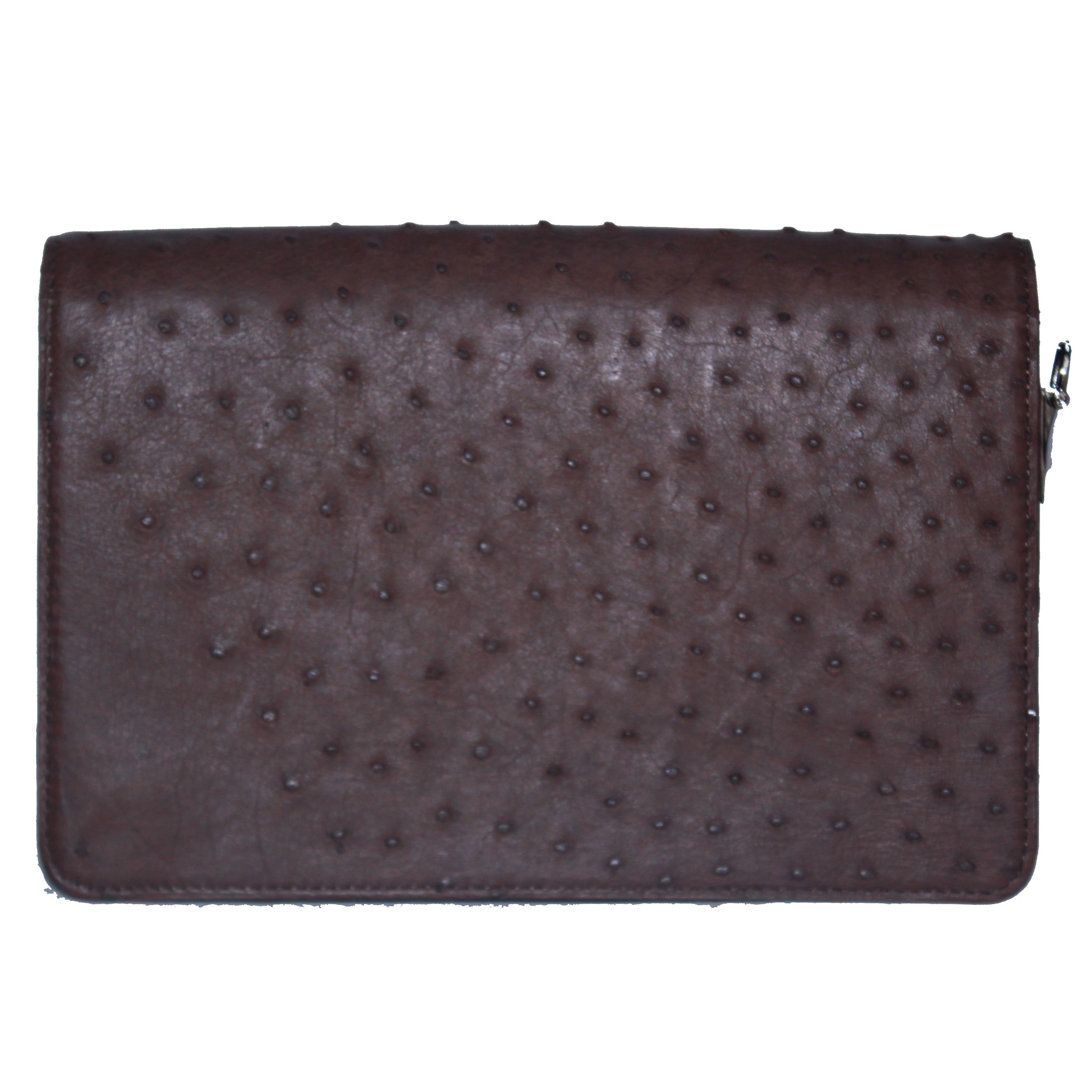 Bóp/Ví da đà điểu Huy Hoàng da bụng kiểu đứng màu nâu đất, nâu đỏ, đen, vàng bò 2408-09-10-18