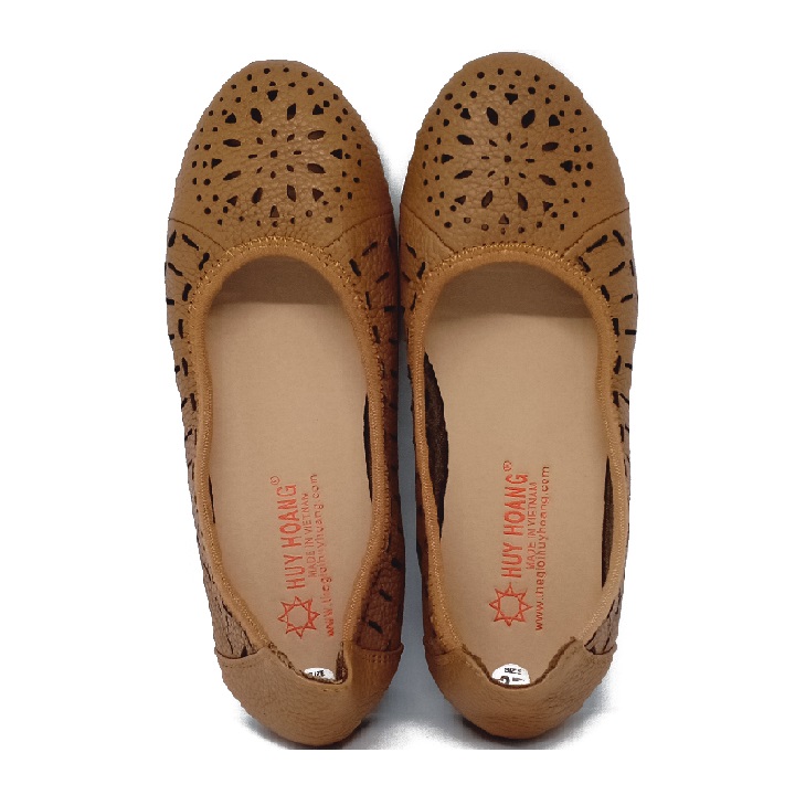 Giày nữ hoa văn Huy Hoàng da bò màu nâu 7949