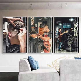 ✨(HCM)Tranh treo tường salon tóc nam bộ 3 tấm có khung kèm đinh treo
