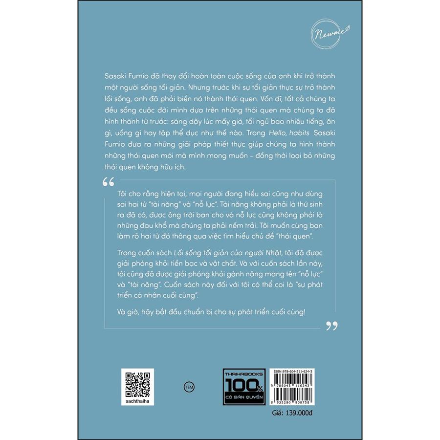 Hello, Habits - Một Chỉ Dẫn Sống Tốt Hơn ------------   Tôi vẫn luôn cho rằng bản thân là người “không có tài năng”. Bởi dù làm gì thì tôi cũng không thể nghiêm túc