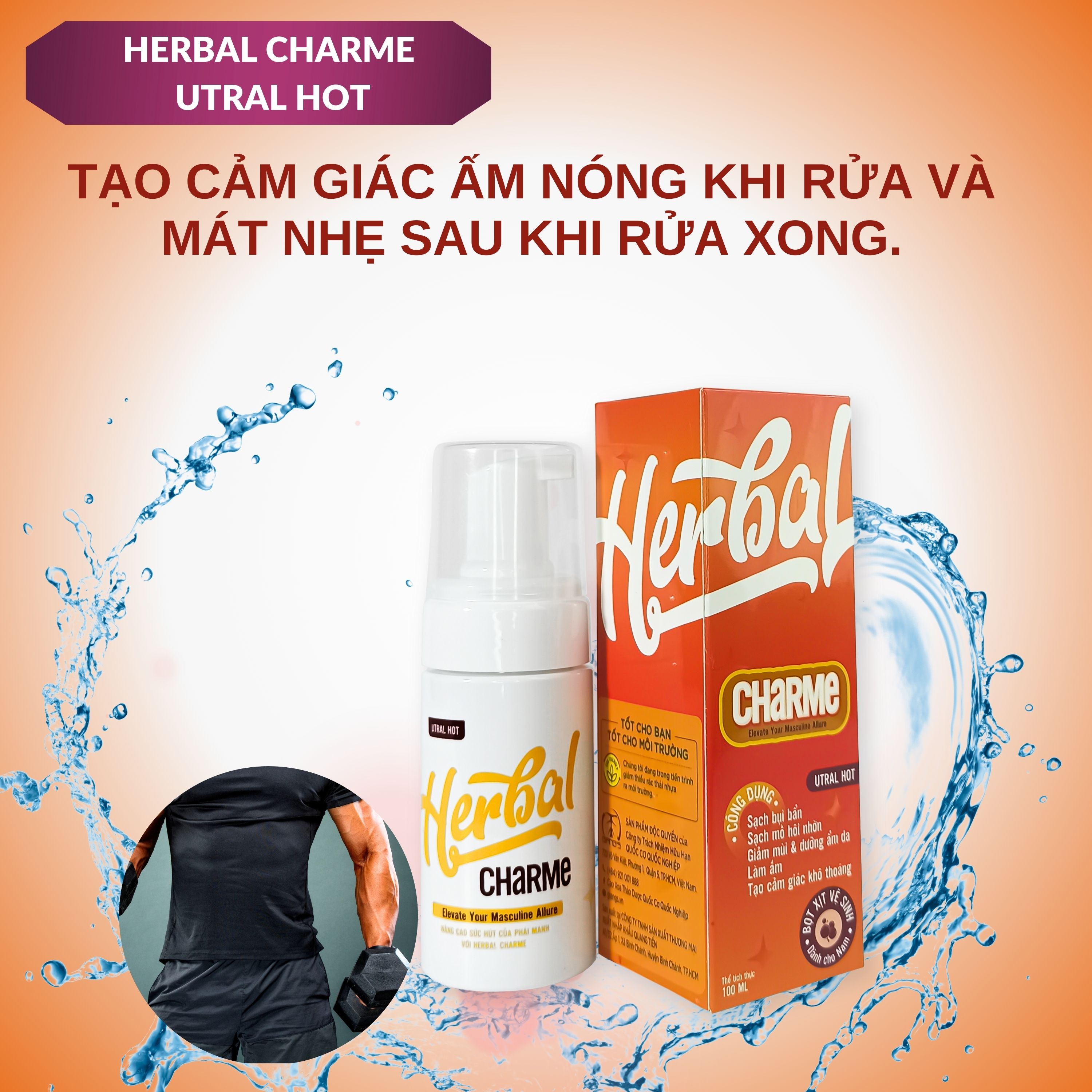 ✨HERBAL CHARME (UTRAL HOT) Dung Dịch Vệ Sinh Nam Giới Khử Mùi Tạo Bọt Hương Thơm Nam Tính Giúp Làm Sạch Sâu Chai 100ml