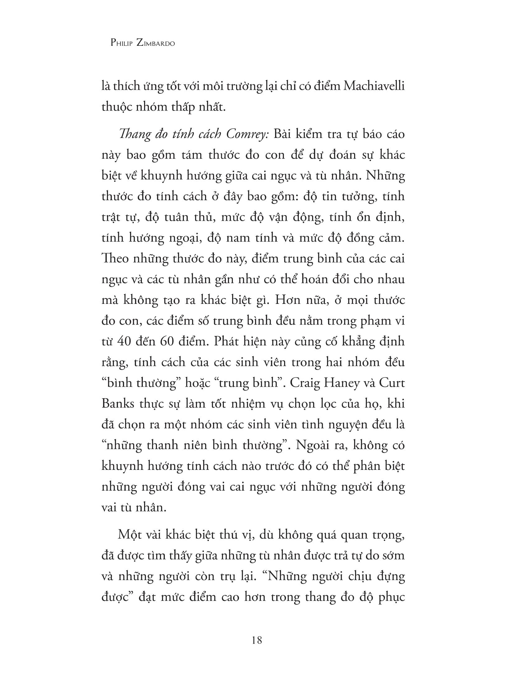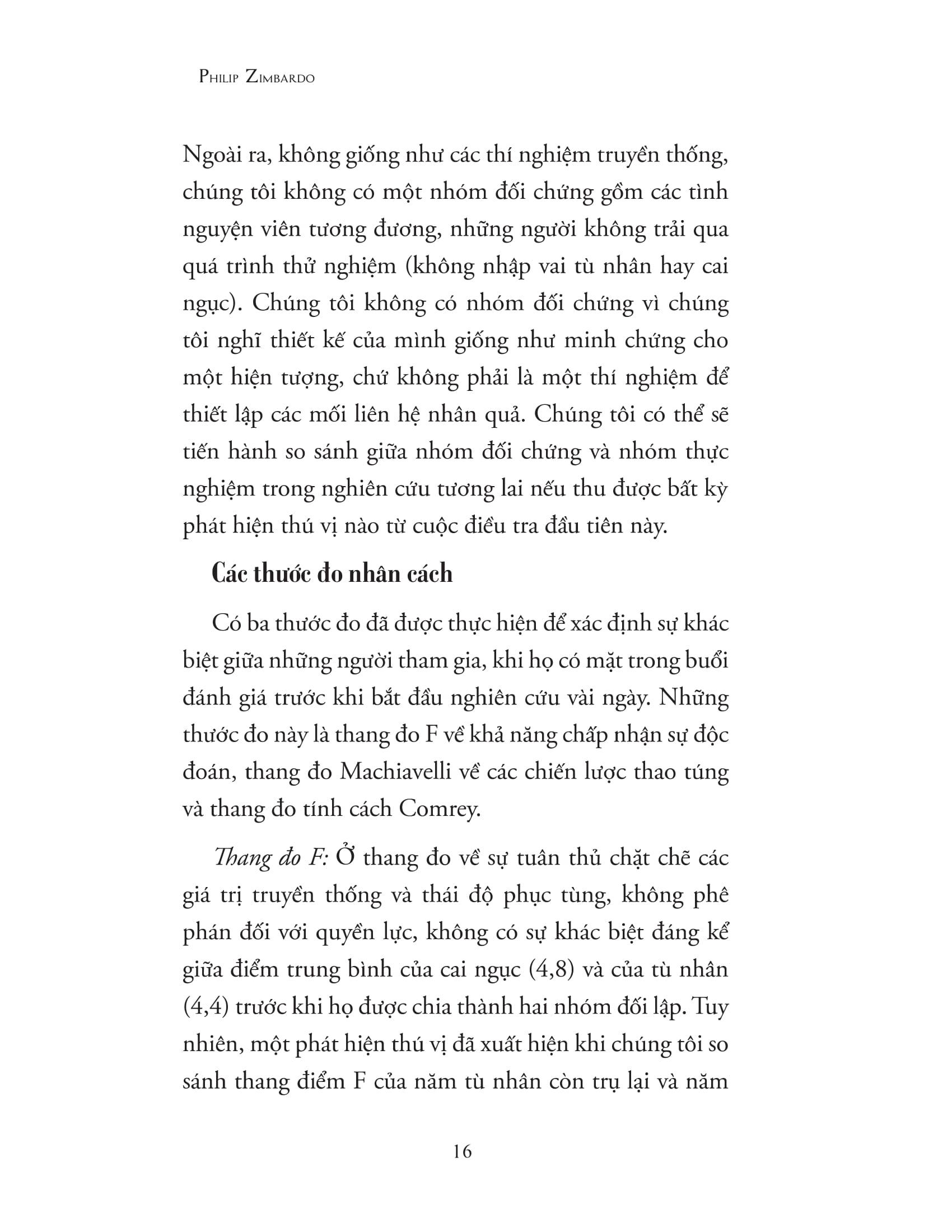 Philip Zimbardo được quốc tế công nhận là “gương mặt đại diện cho tâm lý học đương đại”. Nghiên cứu kinh điển của ông - thí nghiệm nhà tù Stanford - vẫn còn nguyên giá trị tham khảo sau hàng thập kỷ, không ngừng khiến công chúng ngỡ ngàng về sự biến đổi tính cách của con người dưới sự tác động của những yếu tố hoàn cảnh và hệ thống đầy uy lực.