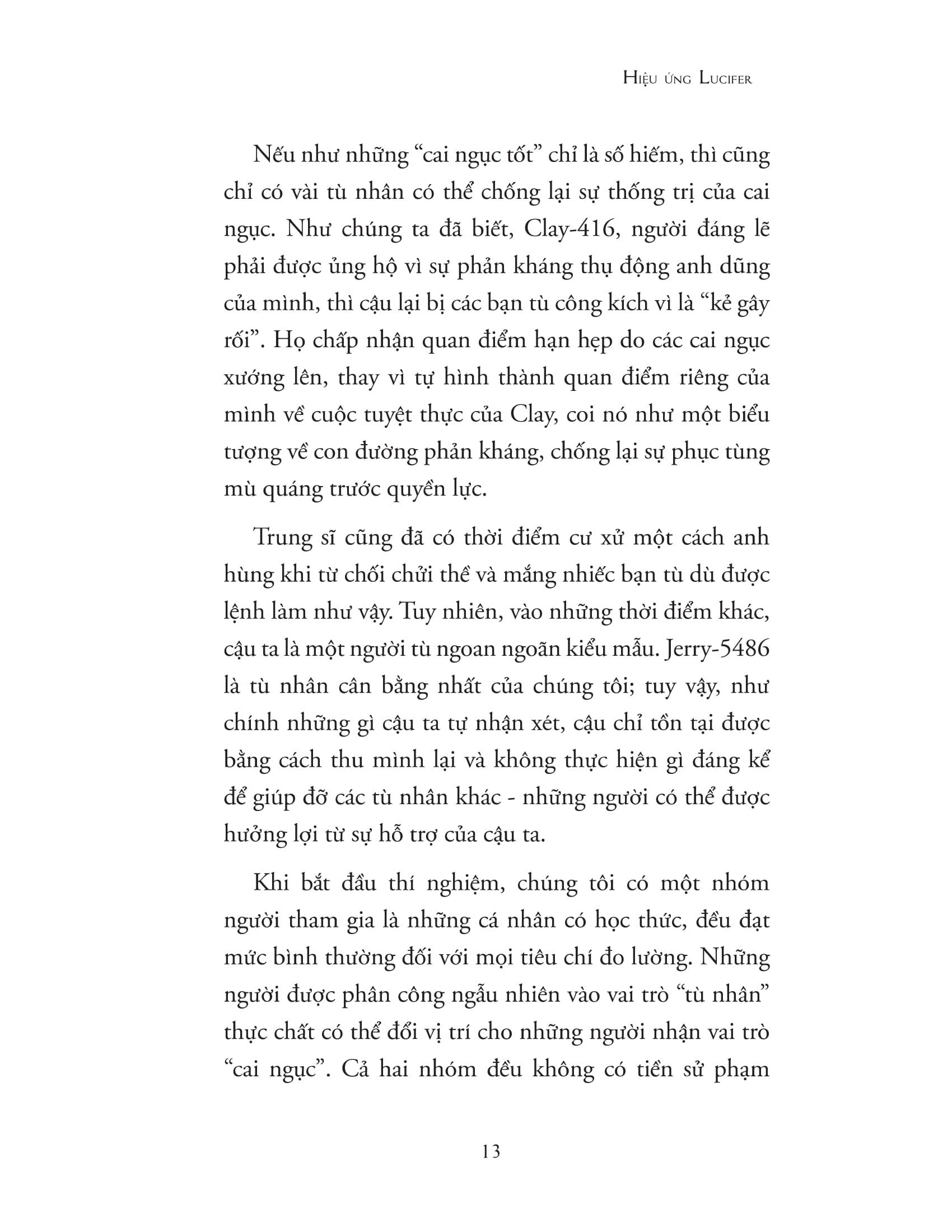 “Hiệu ứng Lucifer sẽ vĩnh viễn thay đổi cách bạn suy nghĩ về lý do khiến chúng ta hành xử theo những cách nhất định, và đặc biệt thay đổi cách bạn suy nghĩ về khả năng gây tội ác của một con người. Đây là một cuốn sách làm ta khó chịu, nhưng cực kỳ cần thiết.” - Malcolm Gladwell