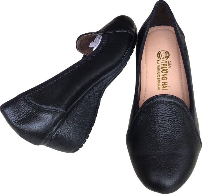Giày đế xuồng trơn da bò đen Trường Hải