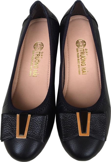 Giày đế xuồng trơn da bò đen Trường Hải