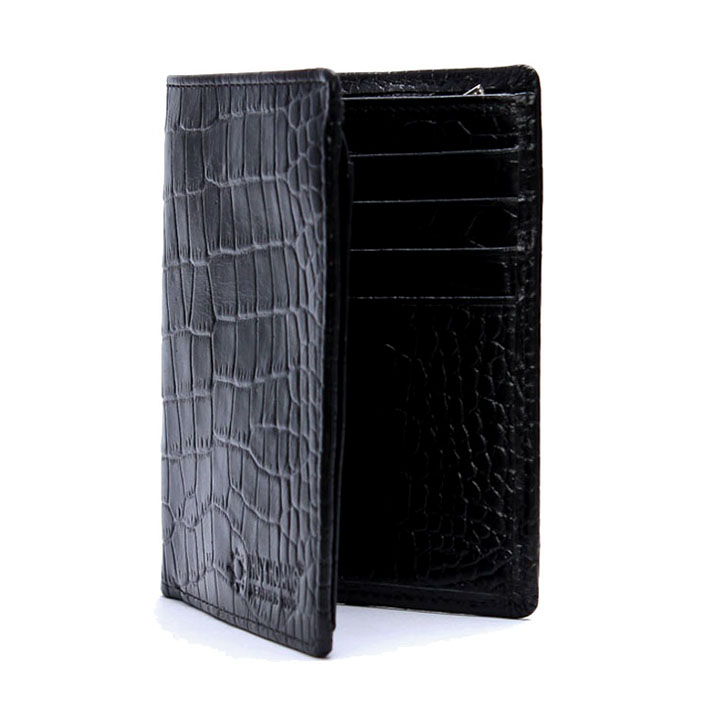 ✨HJ2120 - Bóp nam Huy Hoàng vân cá sấu kiểu đứng màu đen