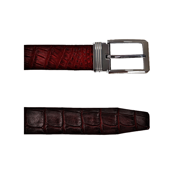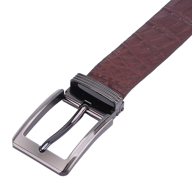 Dây nịt da cá sấu màu nâu đỏ da bụng
