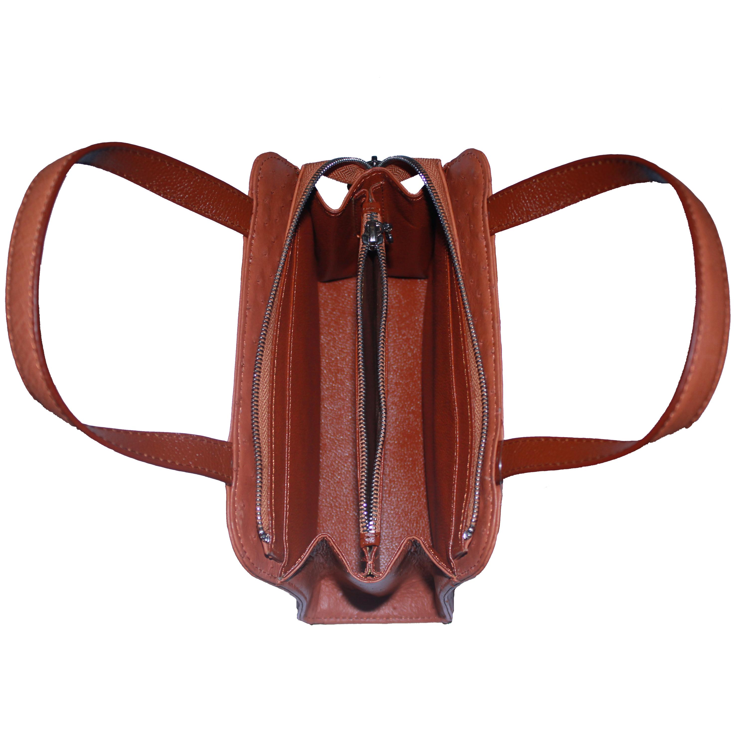 Chiếc túi đeo chéo mini nhỏ xinh, chuẩn da đà điểu màu nâu đất rất đẹp