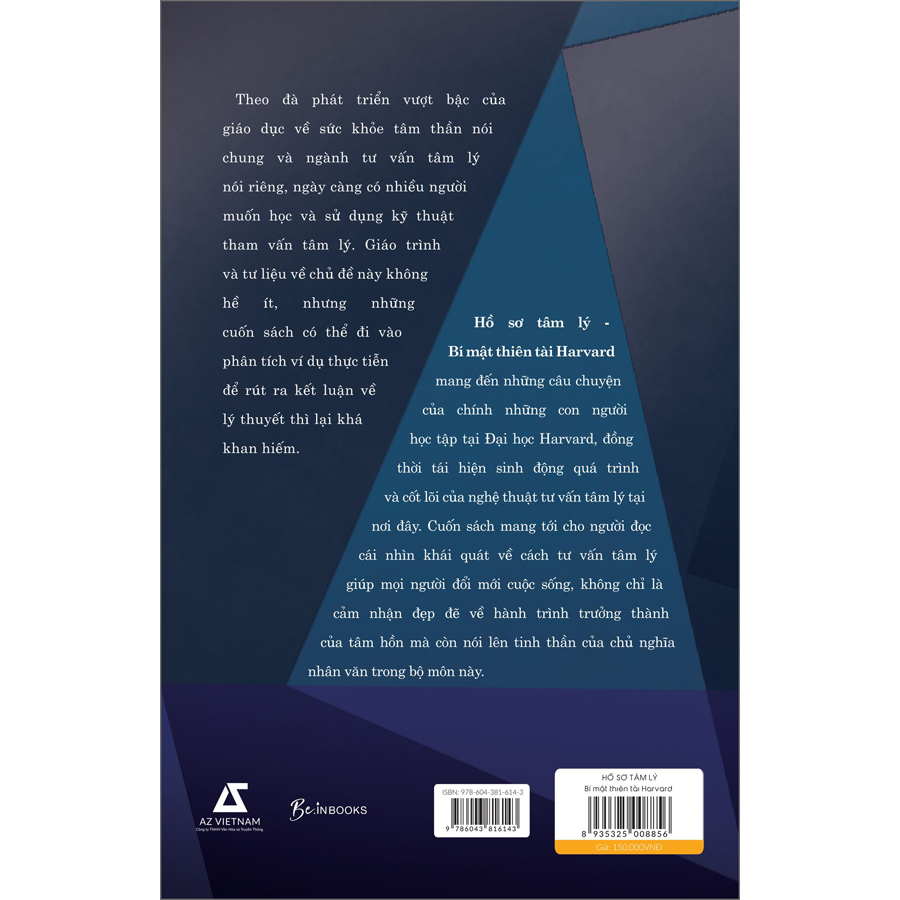 Với cách hành văn mới lạ, nội dung đầy tính nhân văn từ những phân tích ví dụ thực tiễn, “Hồ sơ tư vấn tâm lý - Bí mật thiên tài Harvard” là cuốn sách “vỡ lòng” giúp bạn dễ dàng tiếp cận hơn với bộ môn tư vấn này. Không chỉ đơn giản là an ủi, mua vui cho người khác mà tham vấn tâm lý sẽ tìm cách giúp bạn phản tỉnh, vượt lên sự tự ti. Từ đó thoát khỏi lối tư duy mù mờ để khai phá bản thân và khích lệ đối tượng tự mình vực dậy.