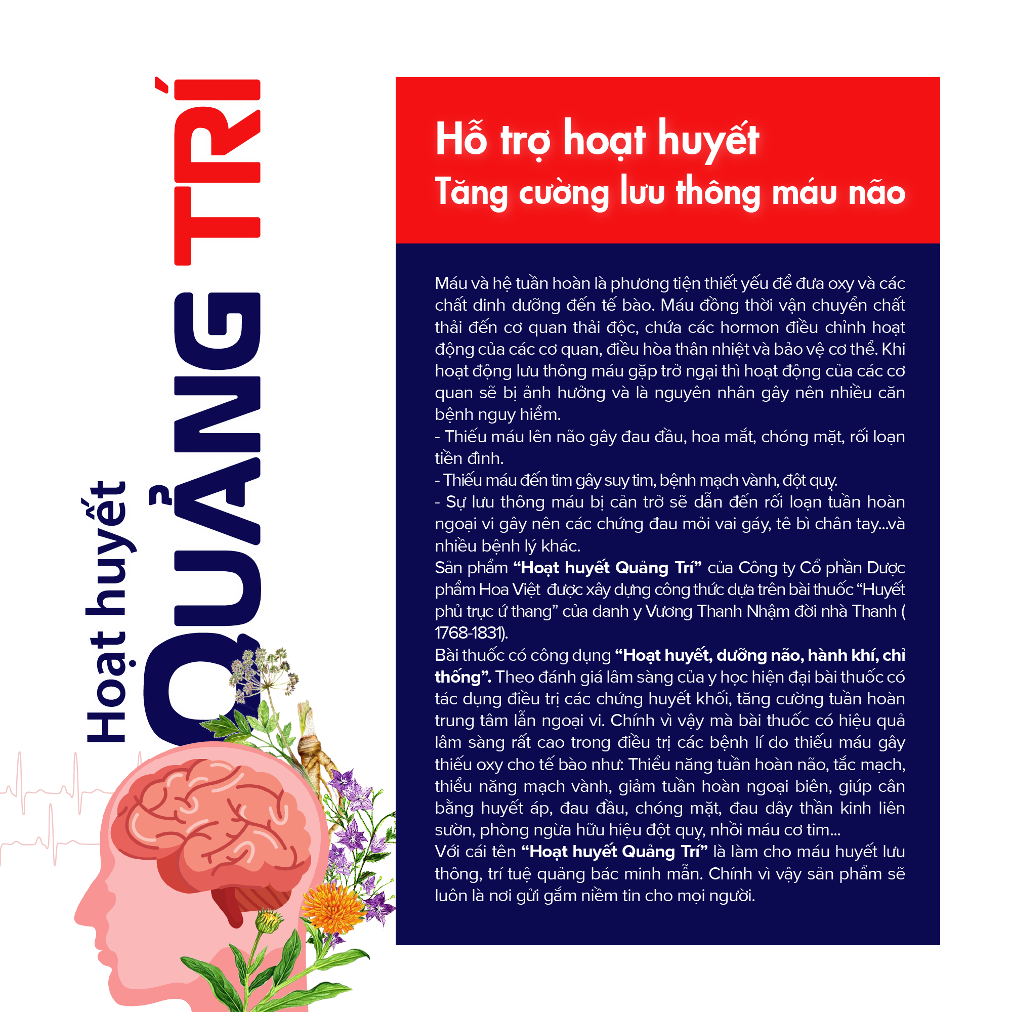 - Tăng cường trí nhớ, lưu thông máu não hiệu quả với Hoạt huyết Quảng Trí Hoa Việt - Hỗ trợ cải thiện trí nhớ, giảm thiểu các triệu chứng do thiểu năng tuần hoàn