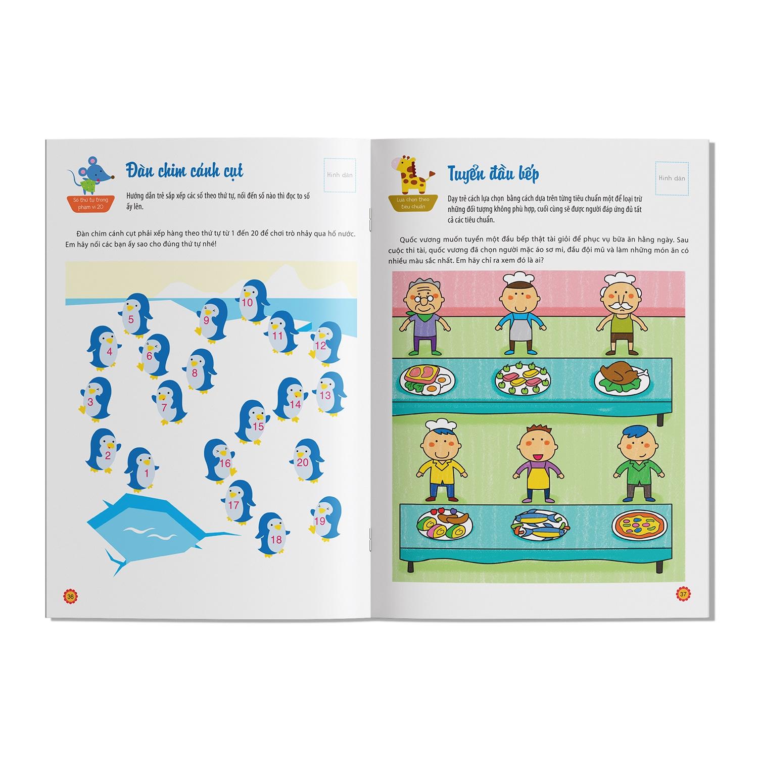 Điểm thú vị của bộ sách là những câu hỏi, bài tập được trình bày rất sống động, đầy màu sắc, sẽ kích thích được sự yêu thích, ham học hỏi của trẻ. Với những hình dán Tuyệt vời, Rất tốt, Rất thông minh, Đủ tiêu chuẩn, Cần cố gắng… để đánh giá từng bài tập, bố mẹ hãy khuyến khích, cổ vũ con mình học toán.