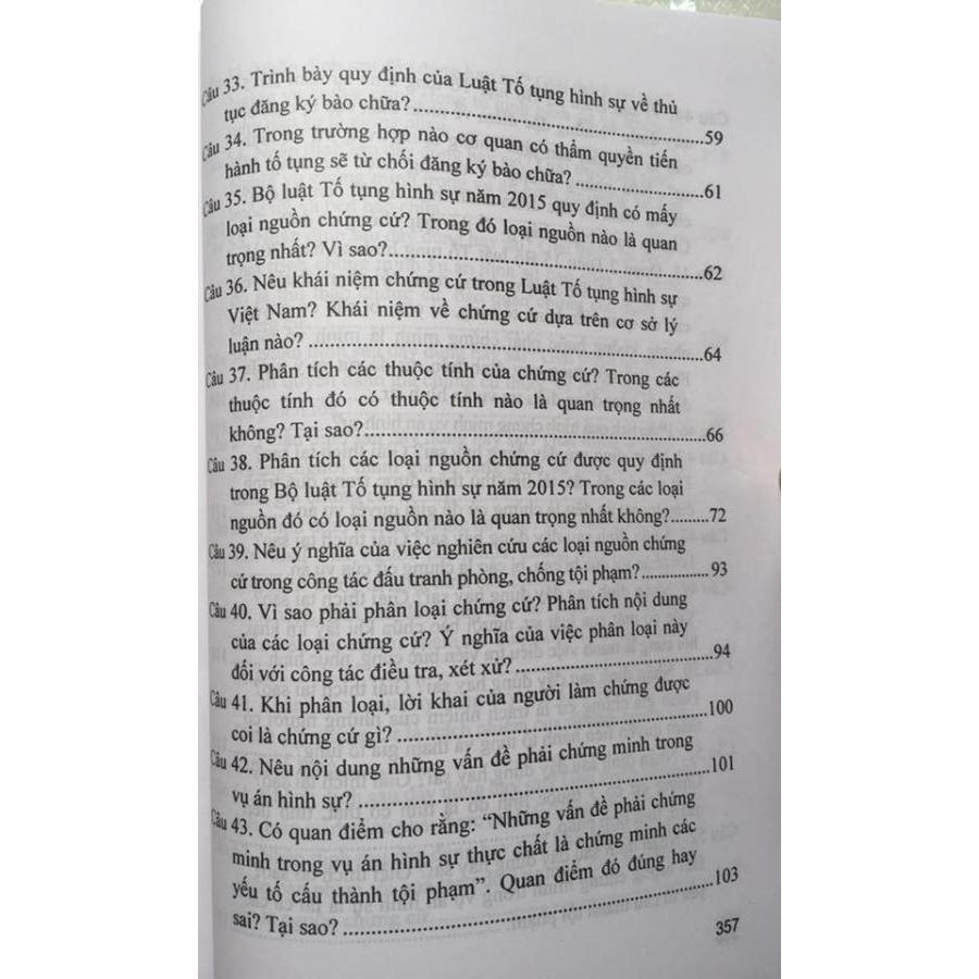 Mua tại TiktokHỏi - đáp luật tố tụng hình sự năm 2015 Tác giả: TS Phạm Thị Thoa - Học viện cảnh sát nhân dân (Chủ biên) NXB công an nhân dân Khổ 14,5 x 20,5 cm, Số trang : 376 Giá bìa: 99.000 đ