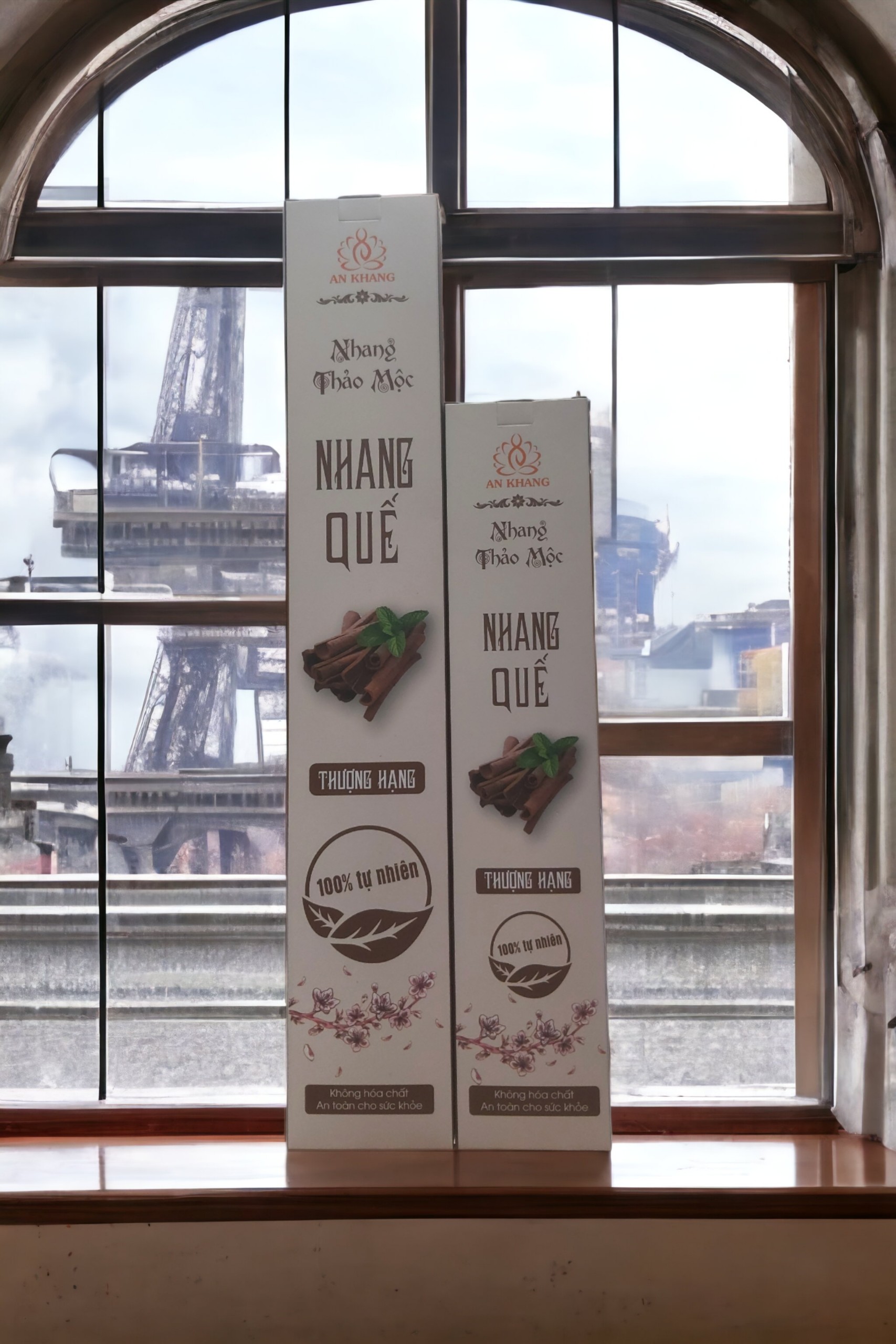 Nhang quế An Viên 4 tấc (hộp 500 cây) Nhang tự nhiên - không hóa chất - không độc hại Nguyên liệu tự nhiên: lá cây quế, vỏ cây quế, keo bời lời Quy cách: đường