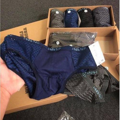Hộp 5 quần lót nam tam giác Muji nhật lưới, Quần Sịp/quần xì Nam thông hơi thoáng khí kháng khuẩn Xuất Nhật Size: XL (47-58kg), XXL (58-68kg), XXXL (68-80kg) Chất liệu coton lụa cao cấp