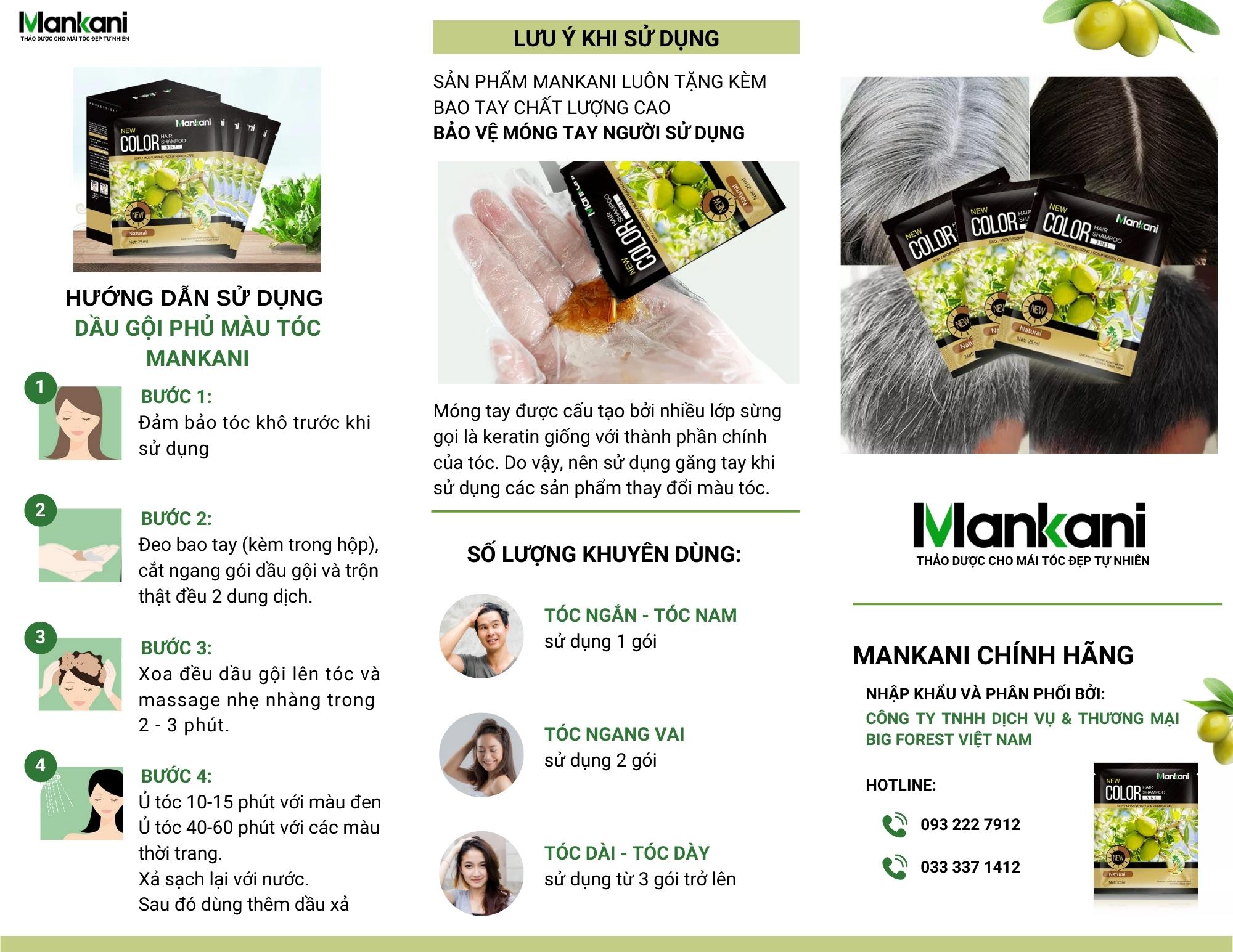 Gói dầu gội nhuộm tóc, phủ bạc thảo dược tự nhiên Nâu Đen Mankani [Gói ~ 25ml - Chính Hãng] Mô tả : Ưu điểm vượt trội : ✓ Không bị xơ tóc khi