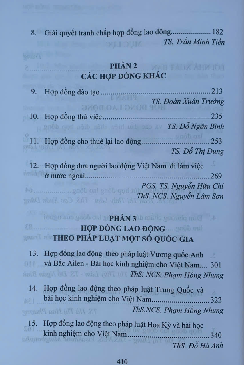 • Phần 3: Hợp đồng lao động theo pháp luật một số quốc gia.