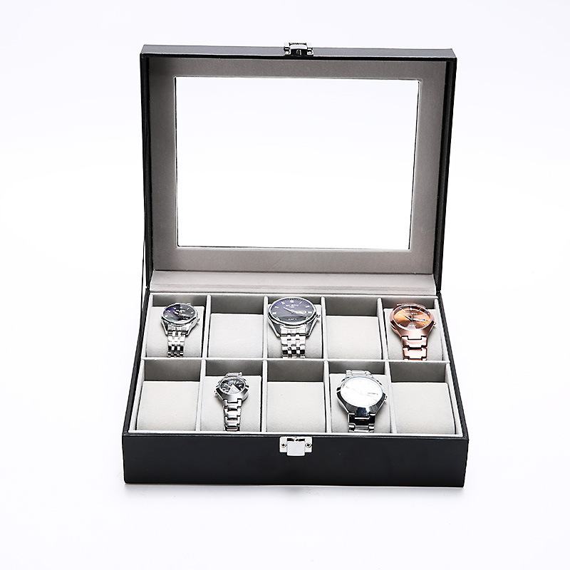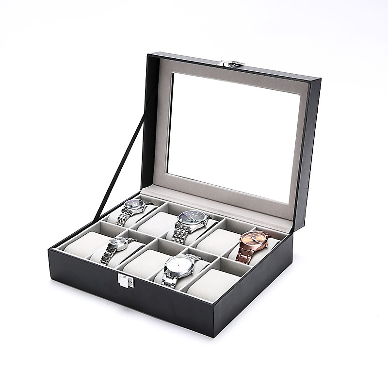 Hộp Đựng Đồng Hồ 10 Cái SAIKE S108 Vỏ Da Màu Đen Lót Xám